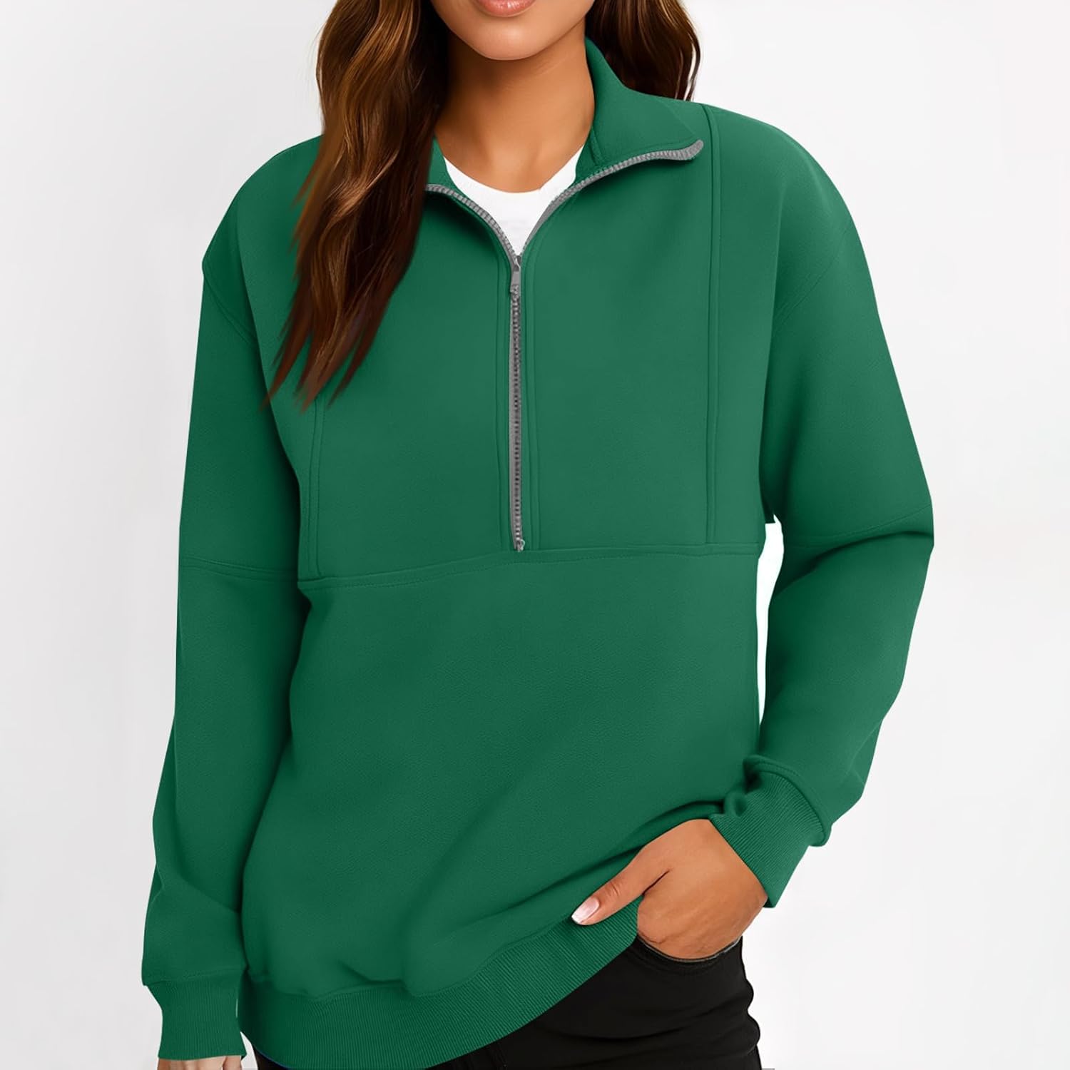 - Stylish Design: Features a trendy half-zip front and a relaxed fit with ribbed cuffs and hem for a cozy, flattering silhouette. Available in a variety of vibrant colors to match your personal style.