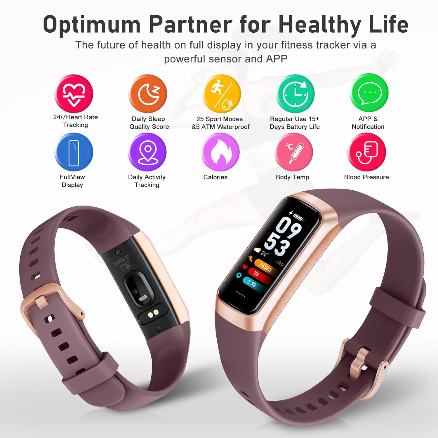- 【25 Professional Sport Modes】 This fitness tracker with 25 sports modes to track the corresponding exercise. It will record your workout time, heart rate, and distance