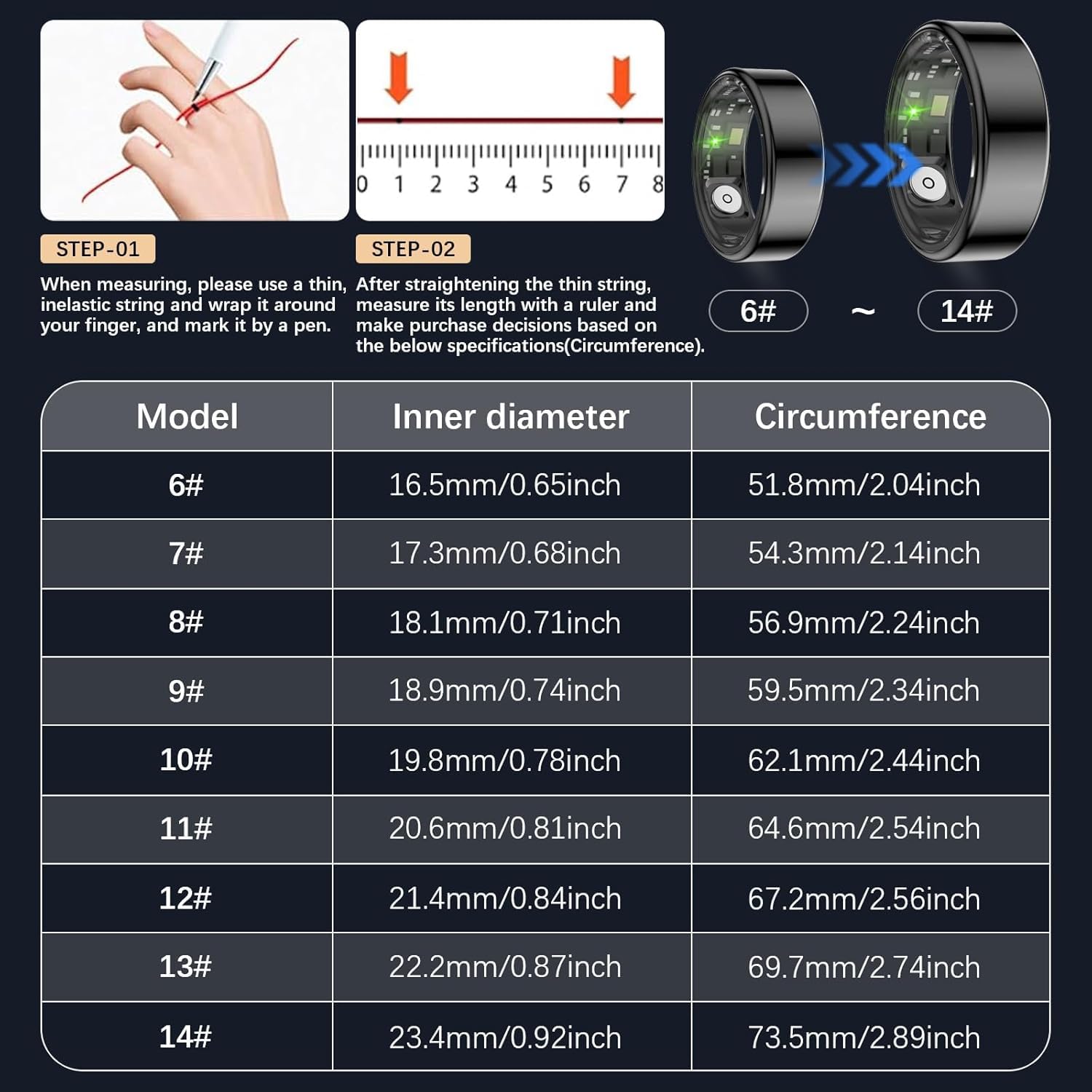 - ⭐【Health Tracker Ring】This smart health ring features a high-precision advanced chip that continuously monitors your heart rate, blood pressure, and blood oxygen levels 24/7, giving you deeper insights into your health.You can also view your 30-day health history in the app to track trends and better understand your wellness over time.