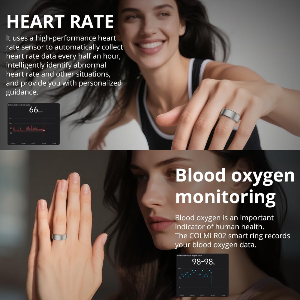 Top Pick โ discover the R02 Smart Ring, a Smart Ring for Women and Men, with a Charging case, Supports Heart Rate, Blood Oxygen, Sleep Health Monitoring, and Sports Tracking Ring. (Silver, 9#) by COLMI, built for performance and designed for life in the United States.
