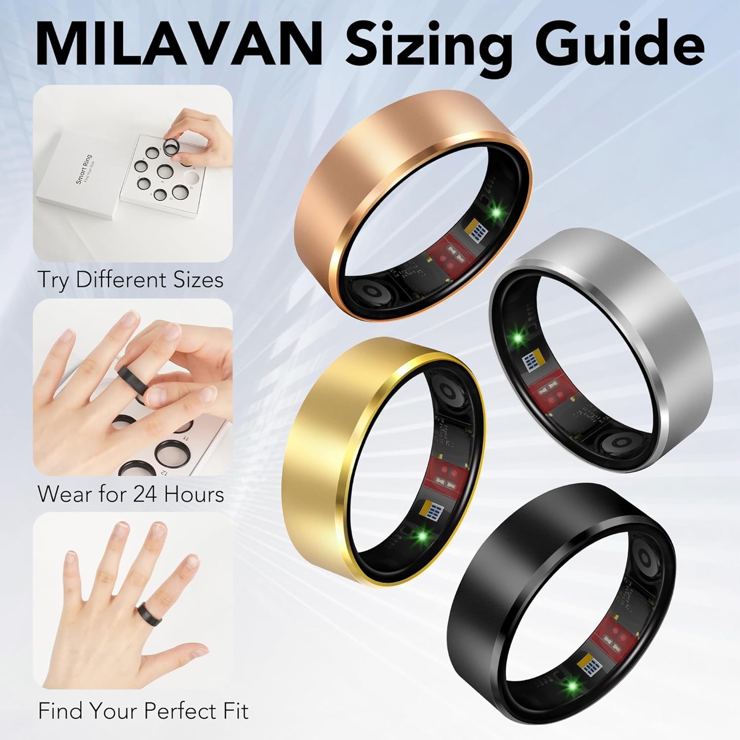 - 【Confirm Size Before Purchase】Before buying the Milavan Smart Ring, we recommend using the Milavan sizing kit to find your most comfortable fit. Note: this kit is only compatible with Milavan Smart Rings