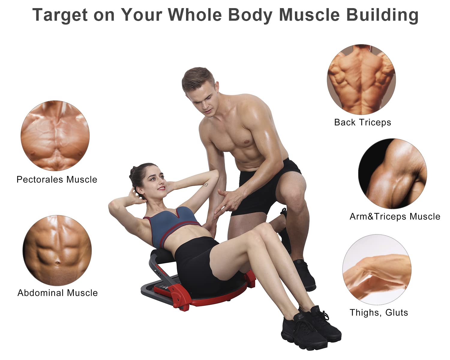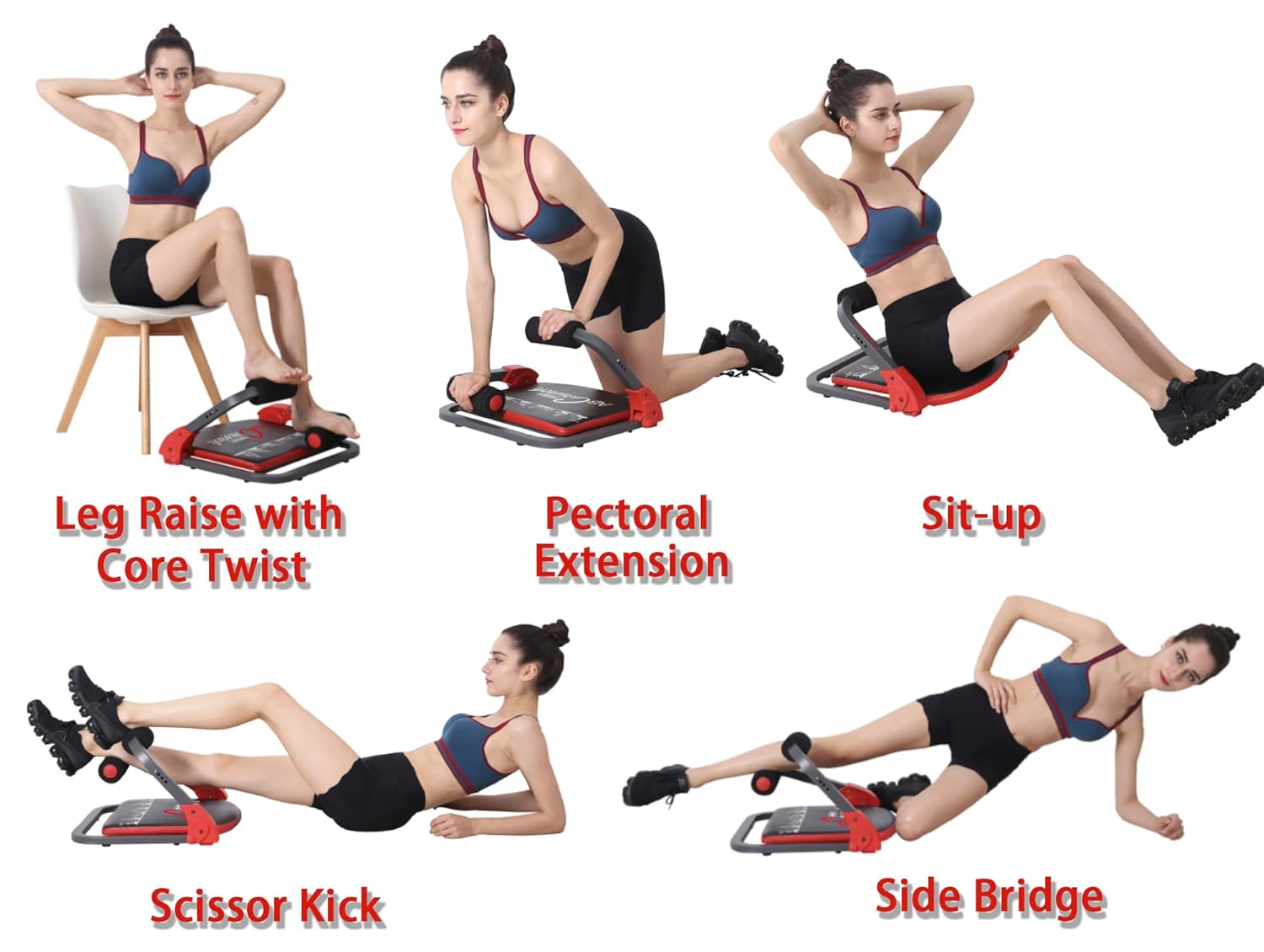 - High Effective Abs Workout Equipment. This abs workout equipment combines multiple functions into one machine, make it possible to do Sit Up, Push Up, Cycling, Scissors Kick, Triceps Extension, Pectoral Extension, Shoulder Press, Arm Curls, Biceps Curl and Lunges with only one exercise equipment. Fits for people who want to build up good body shape without spending much money on gym or fit club, enable you to workout your whole body at home or office.