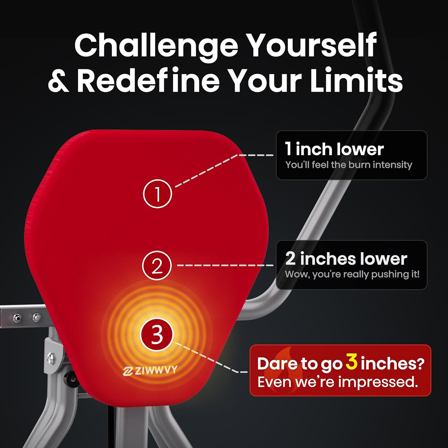 - Inspired by Gym-Level Leg Raises with a Twist: Our AB SWING brings the intensity of gym leg raises to your home, enhanced with a comfortable padded seat. Simply shift your body weight to perform basic core exercises. Want to amp it up? Sit 1 inch lower, and youโll feel the burn intensify. Go 2 inches lowerโwow, youโre really pushing it! Dare to go 3 inches? Even weโre impressed. Challenge yourself and redefine your limits!