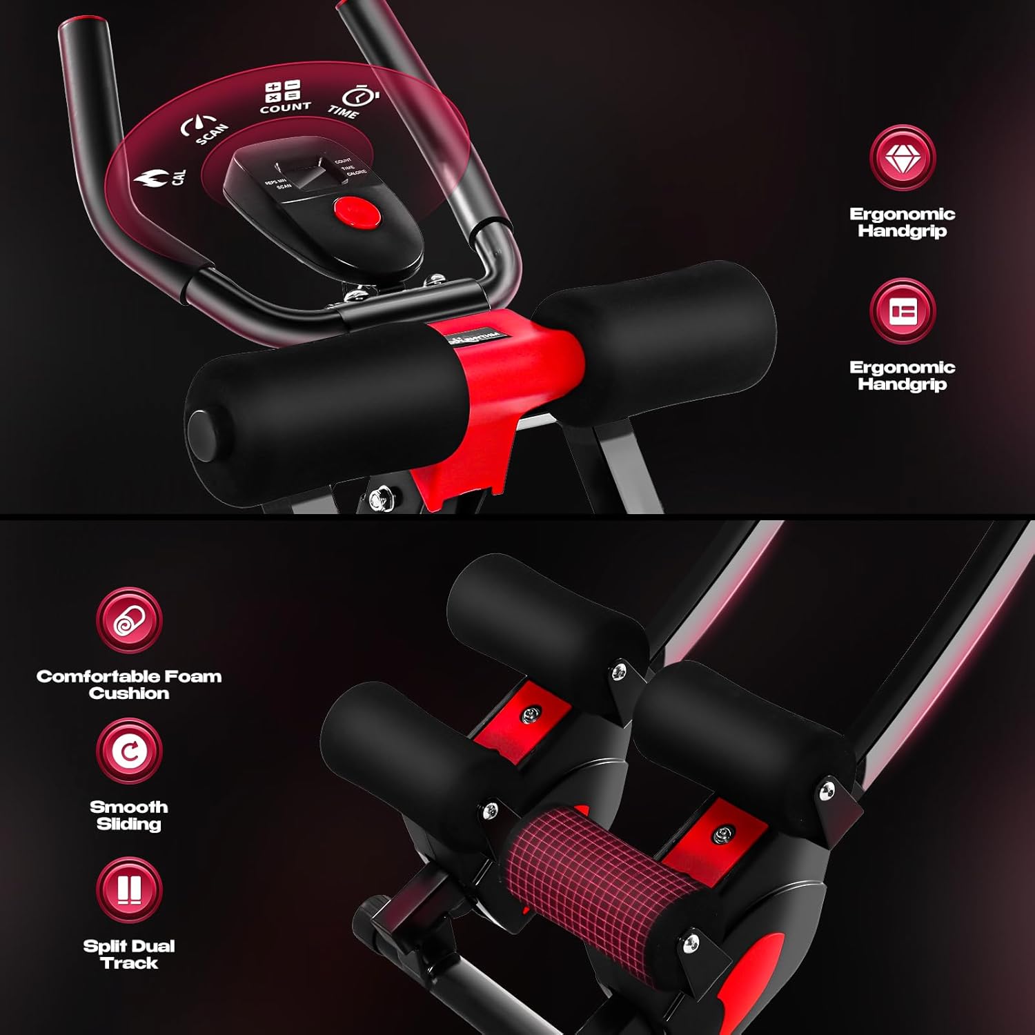 - 【Professional & Effective Ab Machine】This ab machine is uniquely designed with 120°curved dual-track sliders, which can strengthen your abdominal muscles effectively while without putting strain on the back or neck. Separated sliders involve more muscles, targeting on thigh, crus, hip, stomach and core muscles, maximizing the workout efficiency.