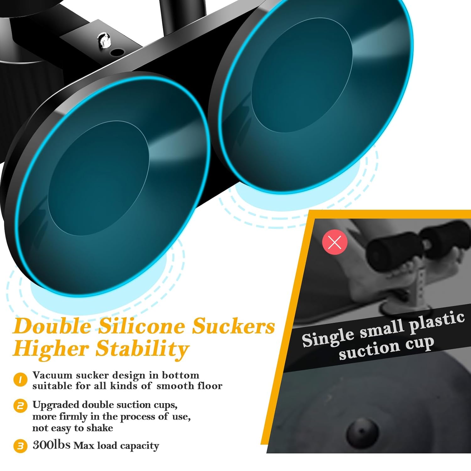 - 【UPGRADE STRONG SUCTION】:Upgraded rubber suction chassis has a larger area and stronger suction. Double suction cups made of natural rubber provide super stability, grip, and safe, allowing you to exercise at ease.