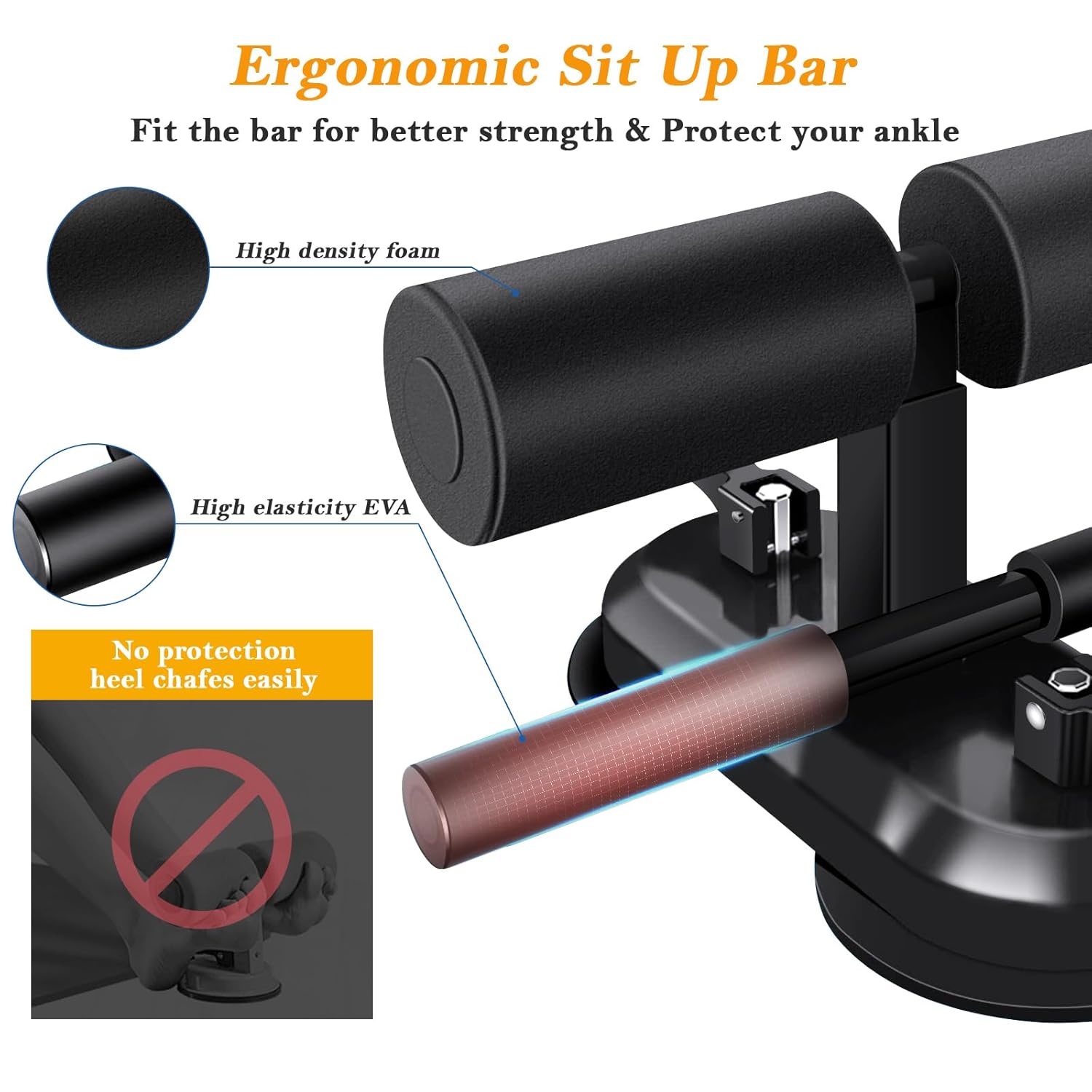 Photos: Sit Up Bar Floor, Portable Sit Up Exercise Equipment with 2 Strong Suction Cups and Adjustable Foot Holder, Abs Master Assistant Device for Home Workout with Massage Roller by TARFEPA