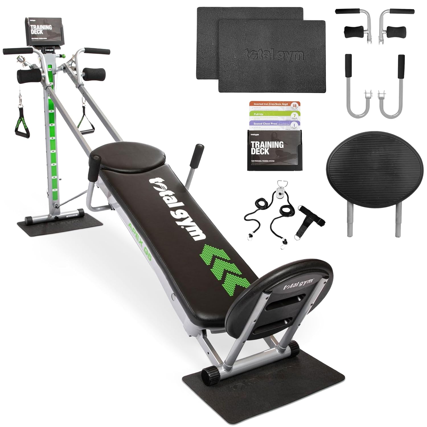 - VARIOUS WORKOUT OPTIONS: Start your at-home workout with 8 resistance levels and over 70 exercises using Total Gym; Enjoy low-impact, fluid movements, effortlessly transitioning between exercises