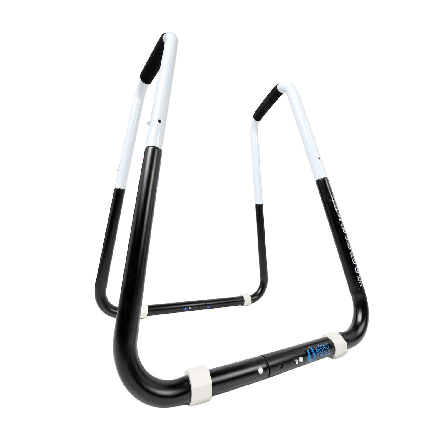 - EASY STORAGE: The only Dip Station that folds easily for transport or storage with fast color-coded spring-tab assembly that requires no tools. Quick-adjust leveling feet are firm on every surface
