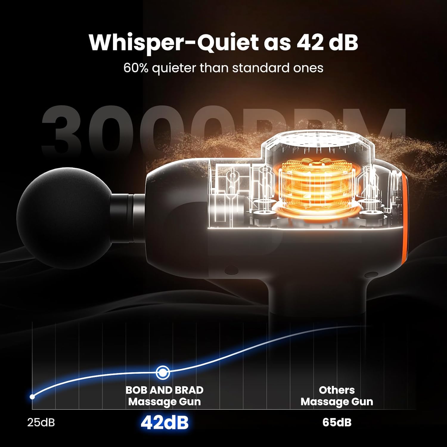 FANTASTIC Massage Gun!! If you are in the market for a quality massage gun, then look no further because this one by Bob & Brad is AWESOME!!! My husband and I had a different one for about 5 years and it did the job, but it was very noisy and heavy. It had given out and stopped working so we searched Amazon and found this one by Bob & Brad. We really liked how it had so many attachments and that it came with cooling and heating attachments too. When we received it, we were surprised at how compact it is and lighter weight than our old one. I was questioning if it would have the same kind of power, but it sure does and then some!! AND it is so much quieter than our old one where we could actually hear the TV while we used it, unlike our old one. After about a month of use, for some reason it stopped charging. So I reached out to the customer service and I got a live person right away who was very friendly and professional and apologized for the issue we were having and stated it was not typical. But all they asked was for me to send some details about our unit and a quick video showing it woudn’t charge. Once they received the email, they responded right away and quickly sent us a new massager. Every time I corresponded with the customer service representative over email, they were very responsive, helpful and extremely friendly!! Very pleasantly surprised at my interaction with them and wish that all companies operated that way! We received our new massager within a couple of days and have been using it daily since and are extremely pleased with it!!! Overall, I HIGHLY recommend this massager for not only how well it works, but also for the great company and service they provide!!!