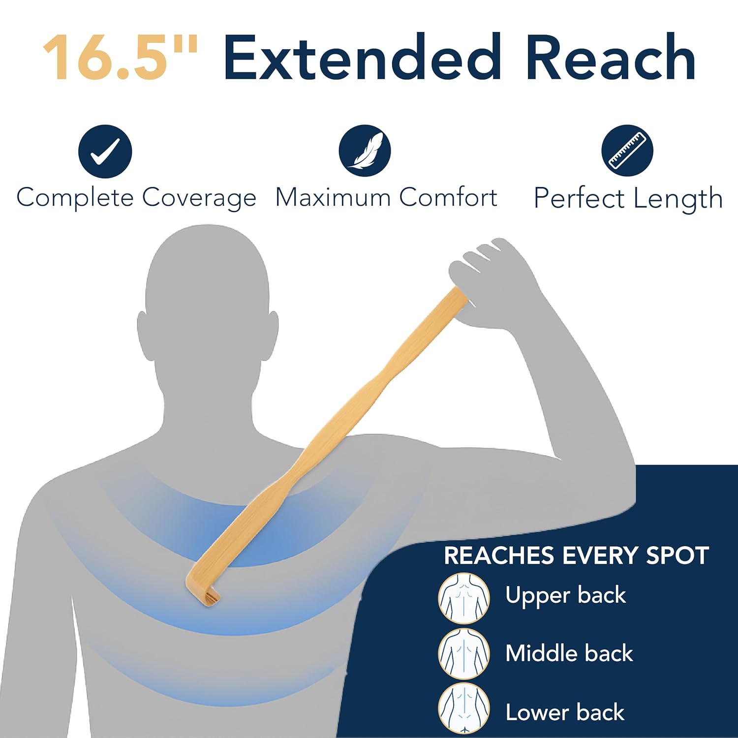 - Each back scratcher measures 16.5 inches, long enough to scratch itches where you can’t reach with your own hands. You can get instant relief without help from others.