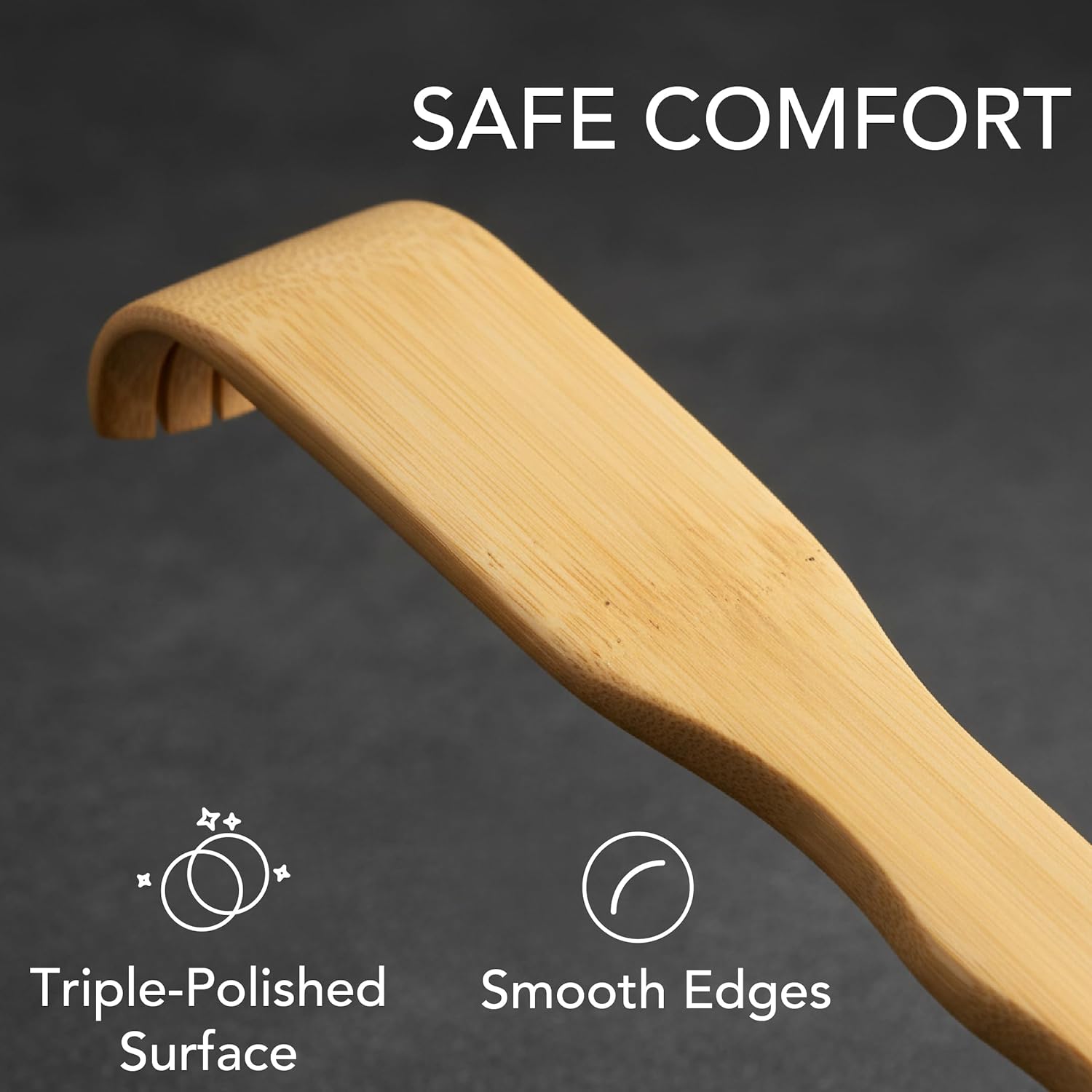 - Slick bamboo back scratcher with clean-cut serves a proper itch scratching. The wooden surface is well polished so that there are no sharp edges or rough surfaces to hurt you.