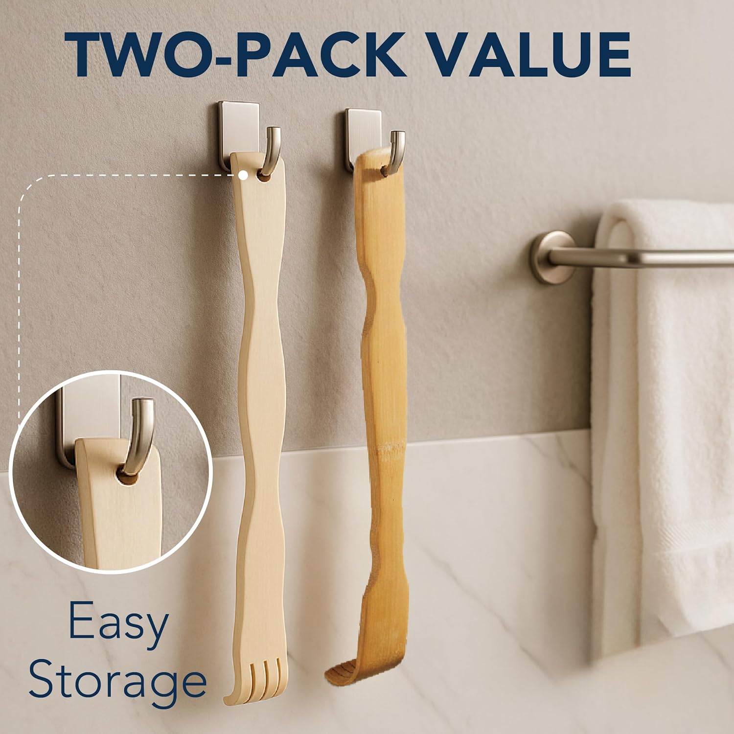 Slick- Bamboo Back Scratcher, 16.5”, 2 Pack, Wooden Back Scratcher Long Handle for Men and Women by Slick Solutions