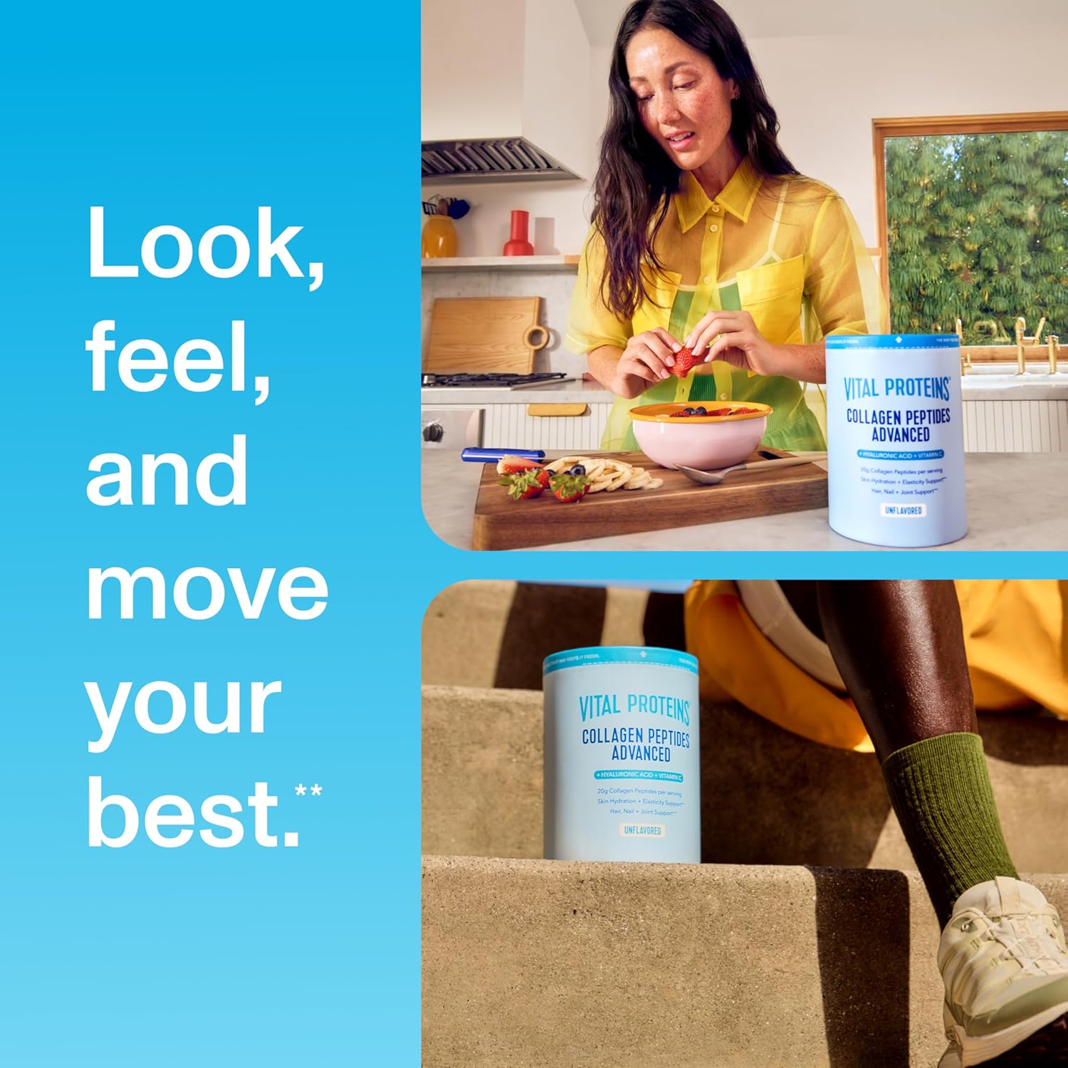- SUPPORTS COLLAGEN PRODUCTION: With 100% daily value of Vitamin C, this Vital Proteins Collagen Peptides Advanced Powder helps promote collagen production which is important for maintaining healthy skin