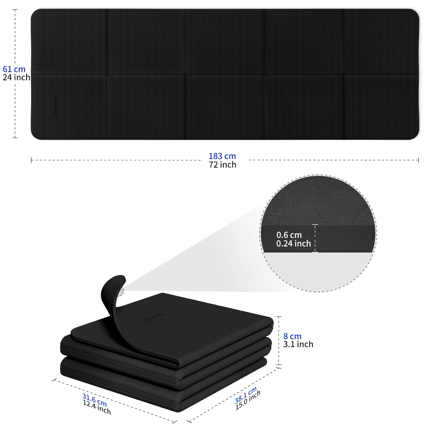 Specification: Readaeer Foldable Yoga Mat for Travel Folding Yoga Mat 6mm Thick with Carrying Bag, Non-Slip TPE Exercise Pilates Mat for 72″ L x 24″ W x 0.24 Inch by READAEER