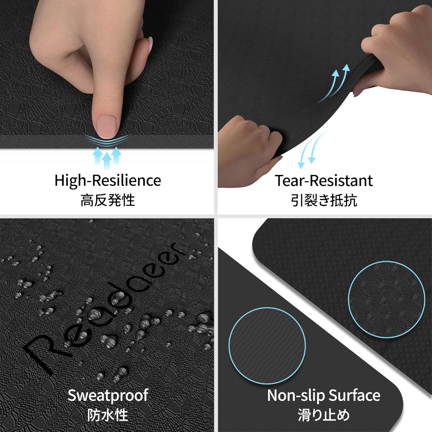 - High Quality: This yoga mat is crafted from high-quality TPE material. The dense and resilient material provides superior cushioning and shock absorption, protecting your joints and ensuring a comfortable practice.