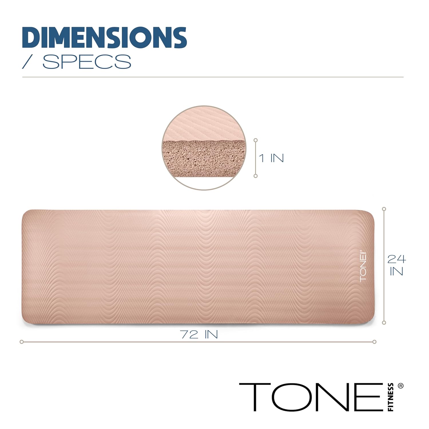 Specification: Tone Fitness 1-Inch Thick Yoga Mat | High-Density, Non-slip Exercise Mat with Carrying Strap for Yoga, Pilates, & Home Gym Workouts | Multiple Options by Tone Fitness