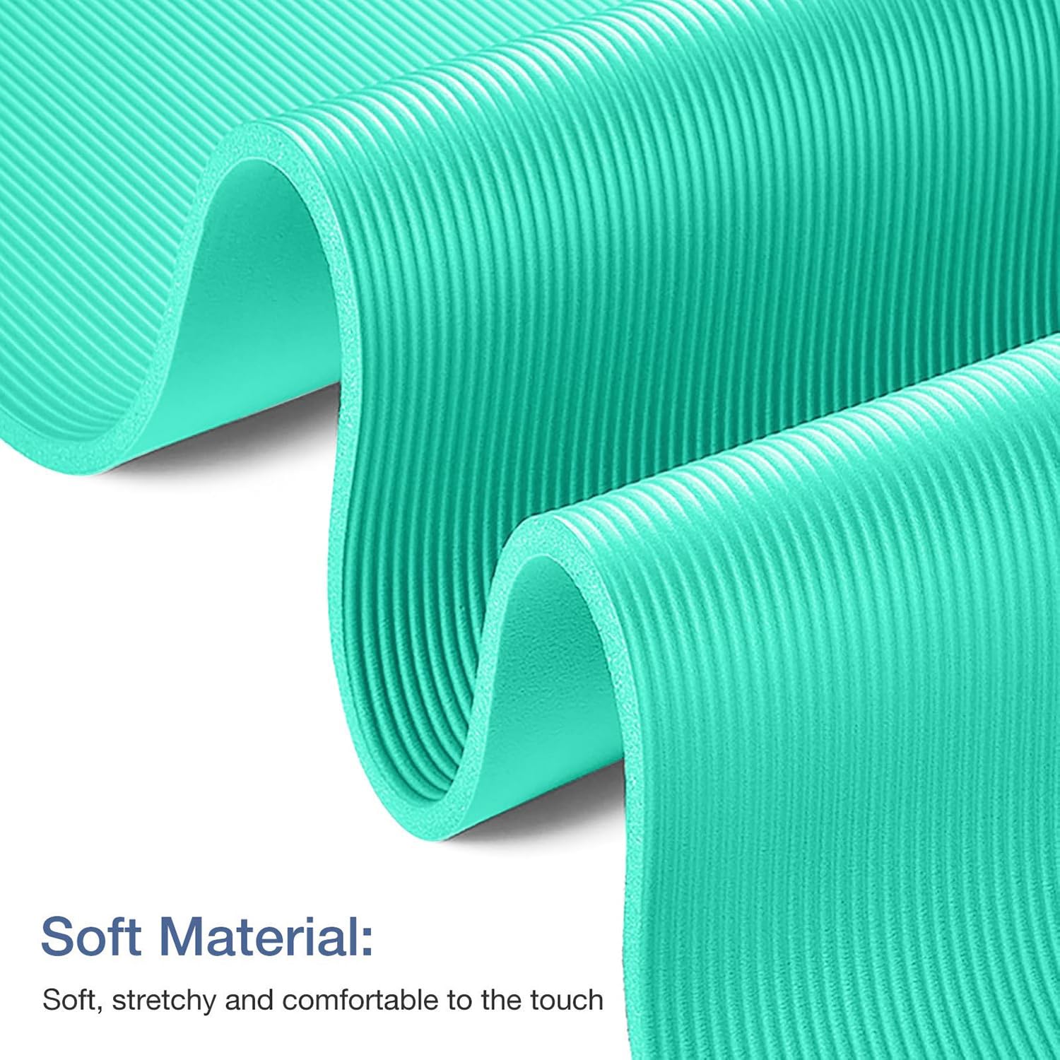 - SOFT CUSHION: This yoga mat made of NBR foam is designed to provide soft cushioning with the padded material for comfortable stretching and posing – an ideal yoga mat for beginners with comfort in mind.