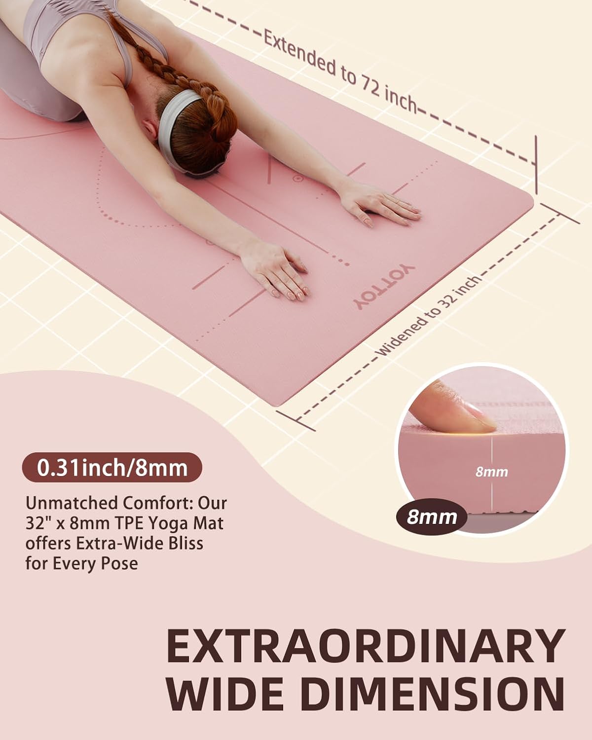 About YOTTOY Yoga Mat, 72″x 32″x1/3″ Extra Wide Non-Slip Exercise Fitness Yoga Mats,Eco-Friendly TPE Exercise Mats for Women Men Home Workout with Strap Bag