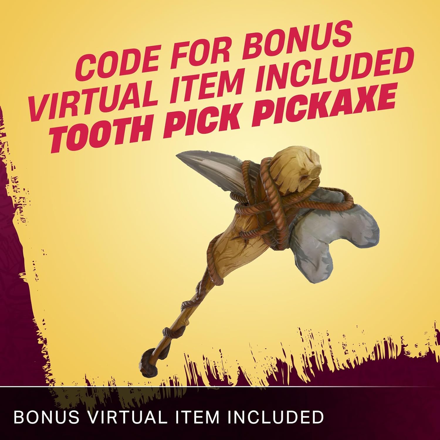 - Code for Bonus Virtual Item Included – Tooth Pick Pickaxe