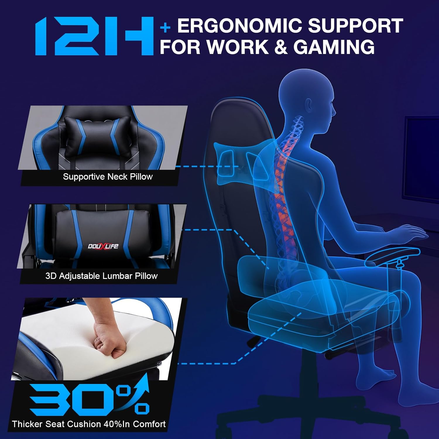 Customer Favorite — discover the Douxlife Computer Gaming Chair with Footrest, Height Adjustable Game Chair for Adults 360°-Swivel Seat and Headrest and for Office or Gaming, Racing Style (Black and Blue) by Douxlife, built for performance and designed for life in the United States.