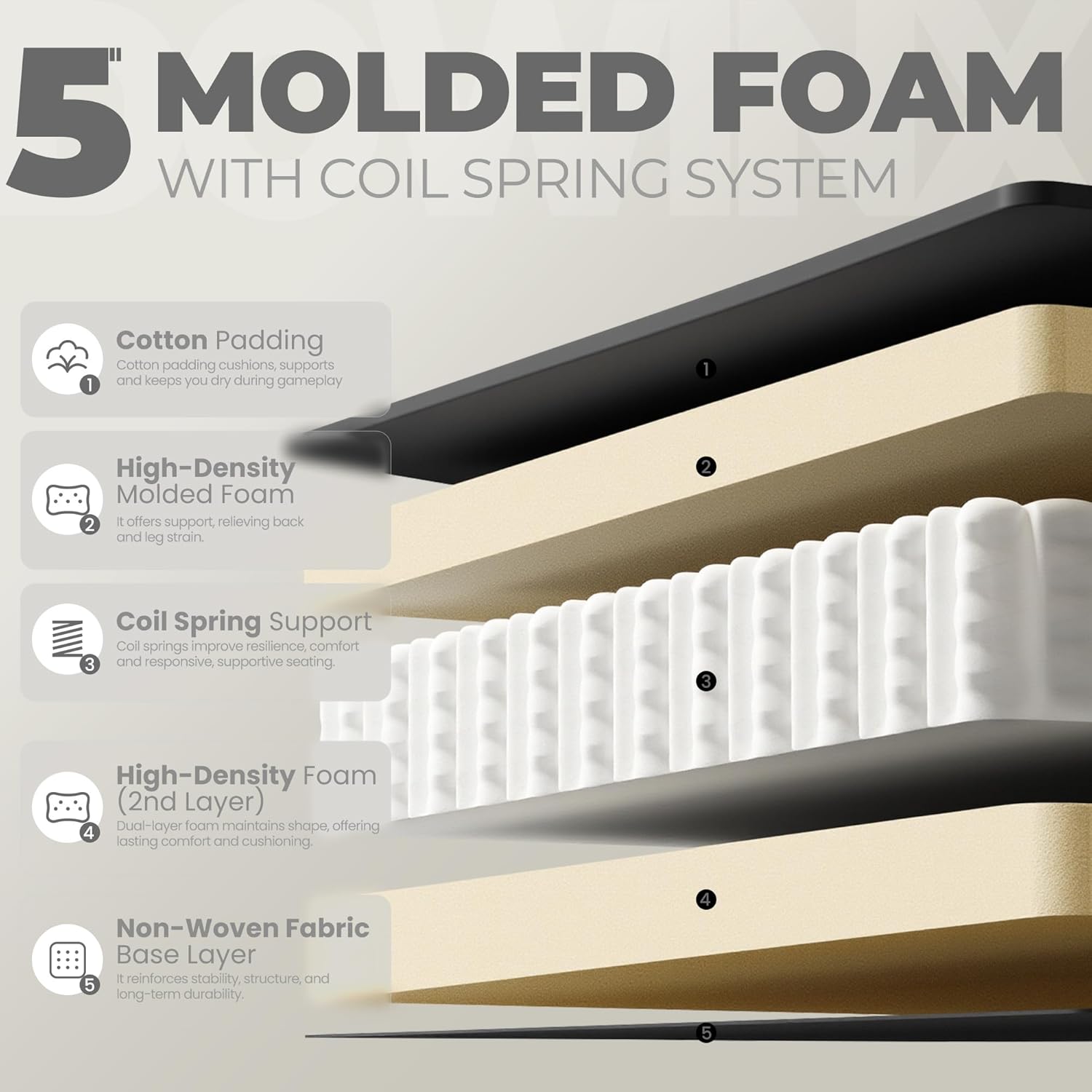 - Sitting Comfort Like Sofa: This seat cushion of gaming chair is composed of pocket springs and shaped foam, allowing for the same elasticity and comfort as a sofa. The springs better distribute the pressure on the seat cushion for better ride comfort and more ergonomic.