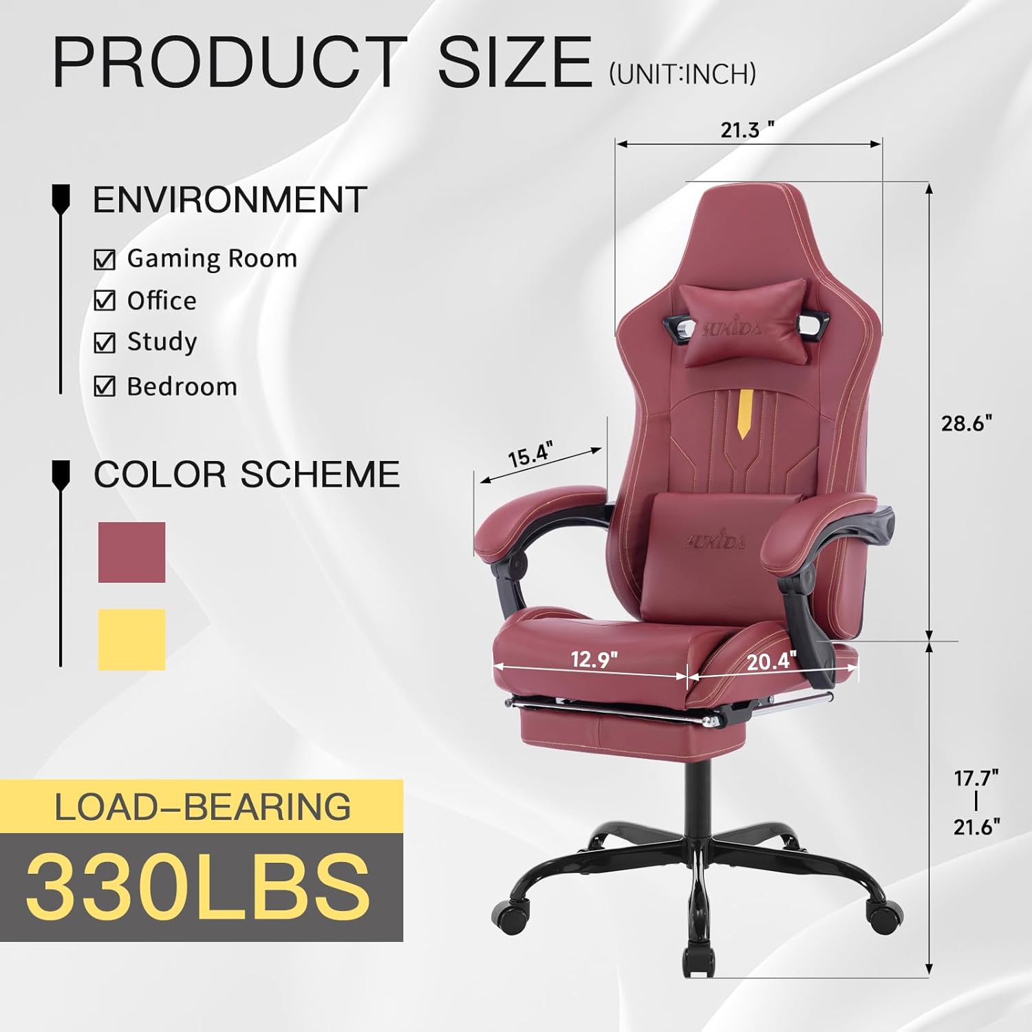 Specification: Gaming Chair with Footrest Ergonomic Computer Chair Massage Lumbar Cushion, Racing Video Game Chair Adjustable Rocker Recliner Executive Office Desk Chair Pu Leather for Adults by SUKIDA