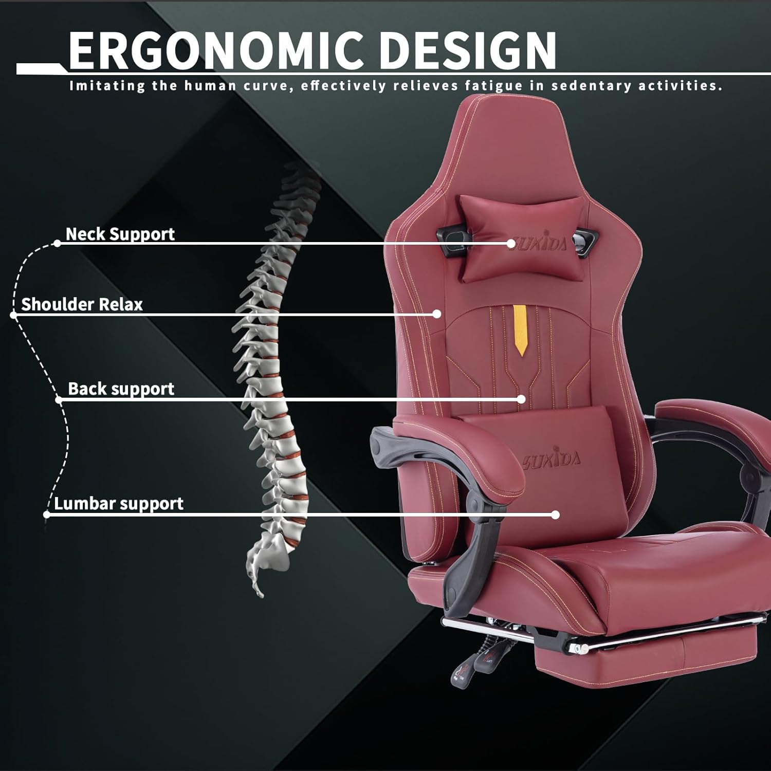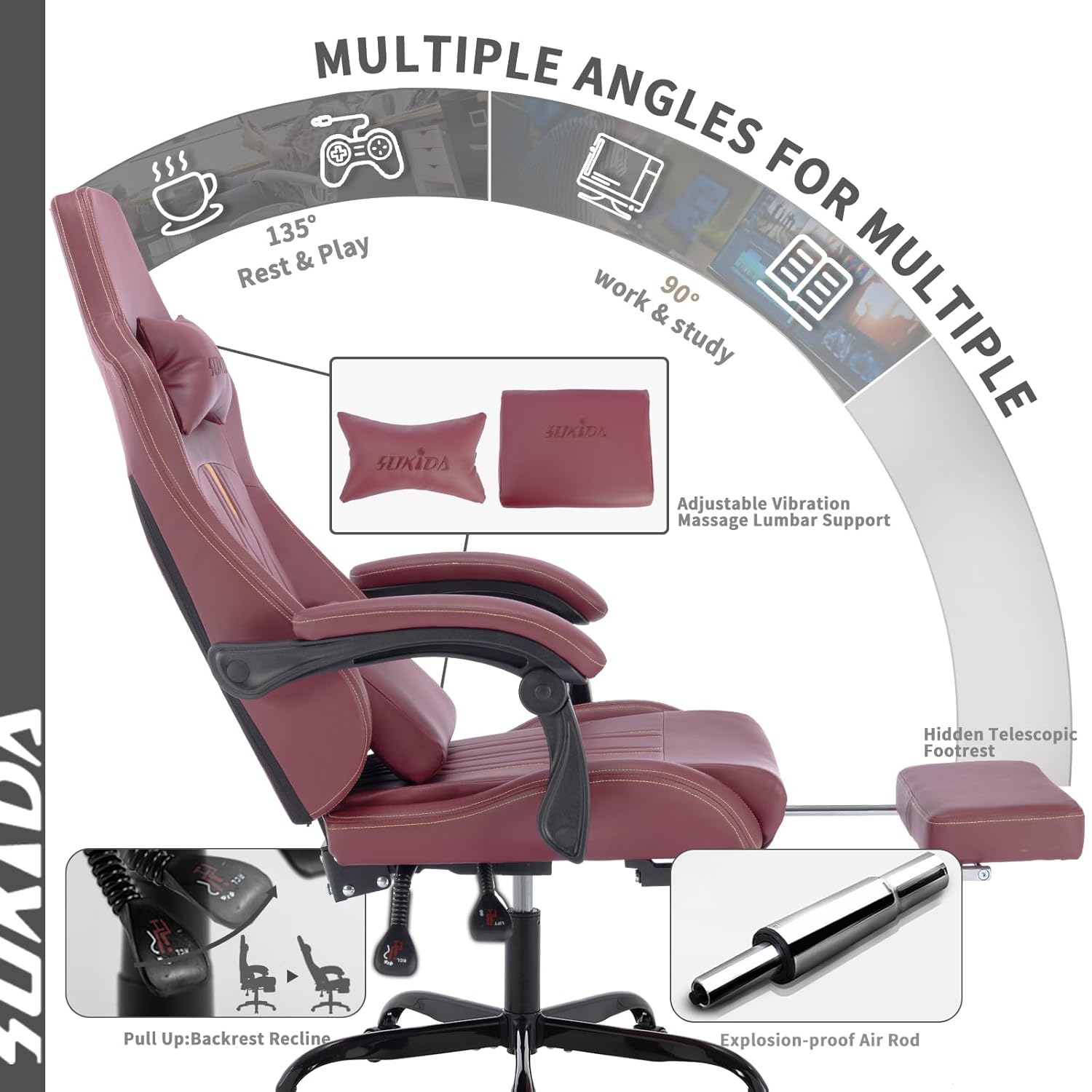Editor’s Choice — discover the Gaming Chair with Footrest Ergonomic Computer Chair Massage Lumbar Cushion, Racing Video Game Chair Adjustable Rocker Recliner Executive Office Desk Chair Pu Leather for Adults by SUKIDA, built for performance and designed for life in the United States.