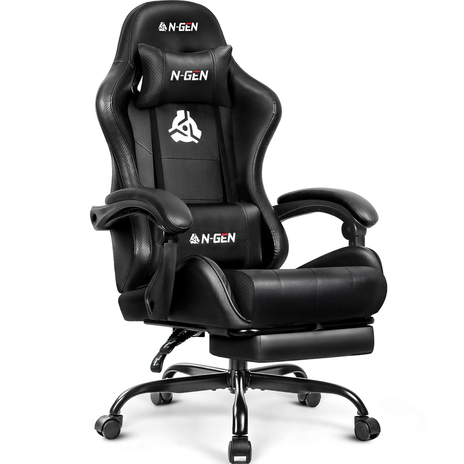 Photos: N-GEN GAMING Video Gaming Chair with Footrest Lumbar Support for Home Office High Back Recliner Height Adjustable Ergonomic Comfy Leather Computer Desk Chair (Black) by N-GEN GAMING