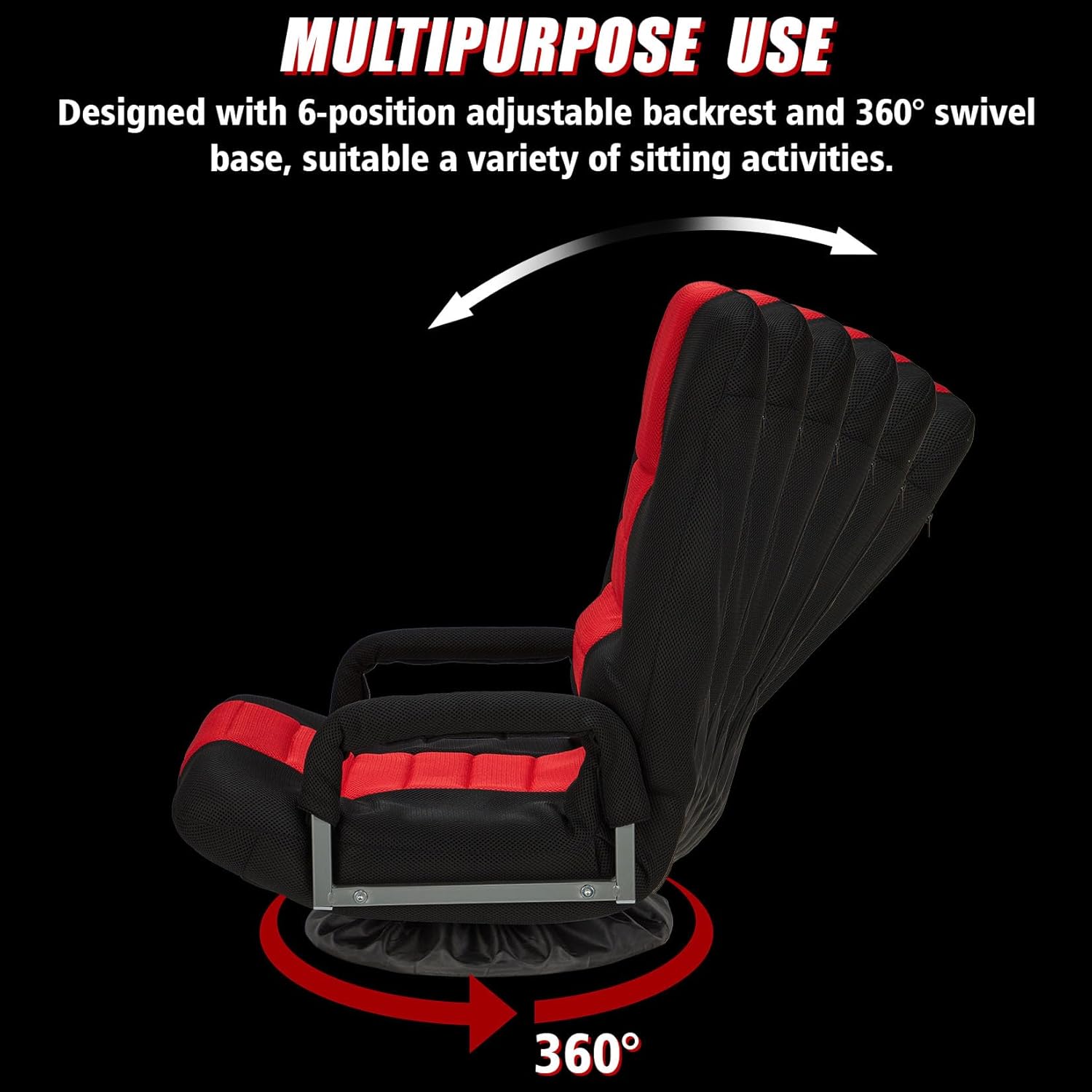 About Swivel Gaming Chair Multipurpose Floor Gaming Chair for Playing Video Games, TV, Reading w/Armrest Lumbar Support & 6 Adjustable Postion Backrest for Adults & Kids,Red