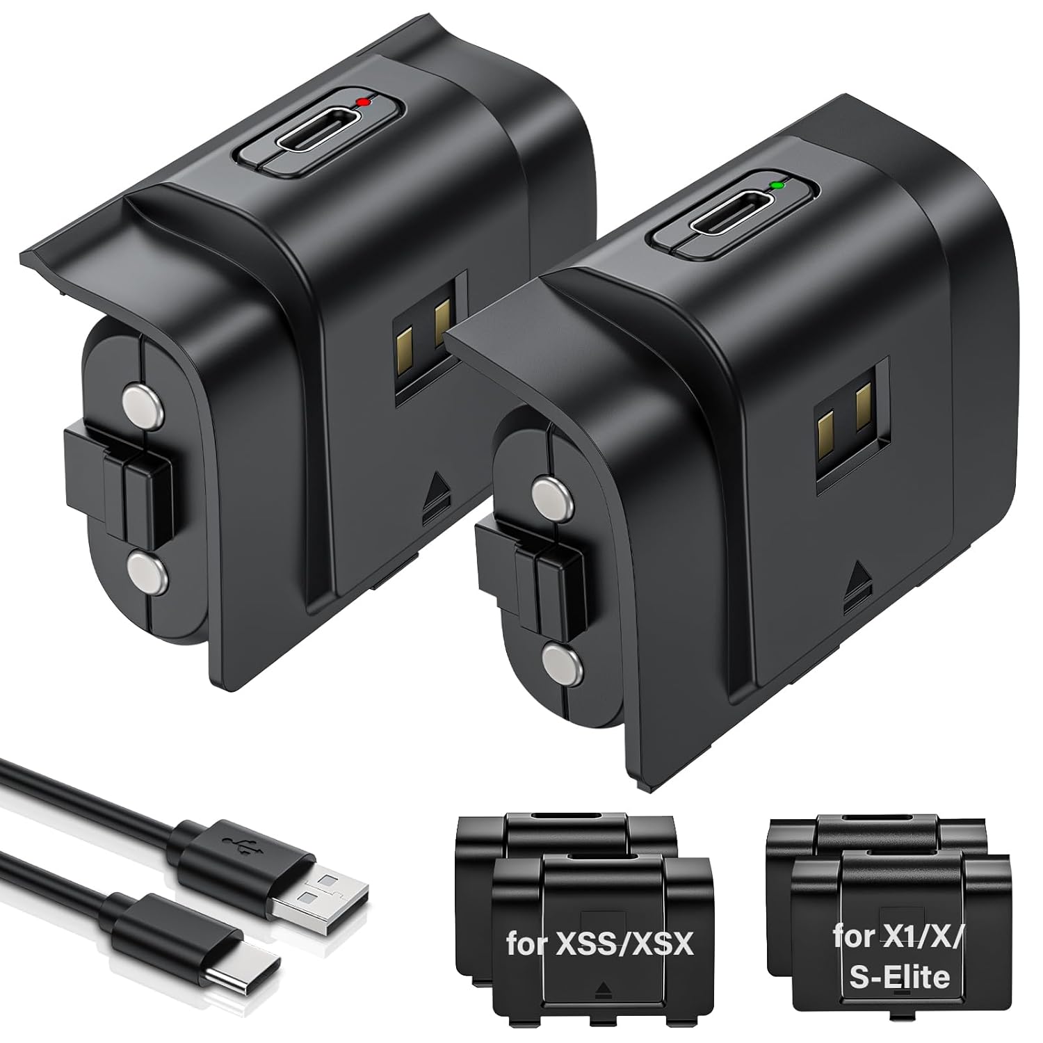 - Fast Charing-Easy to Use: Providing 2 Charging Ways: 1) Charge the battery by USB type-C cable separately. 2)Plug the provided usb type-C cable into the battery pack inside the controller that you can continue gaming. No need to separate them from the controllers, enjoy uninterrupted gaming without worrying about running out of charge. Package: 2x 4800 mWh rechargeable battery pack for xbox controller, 2× Battery cover for Xbox Series X/S controller, 2× Battery cover for Xbox 1 controller, 1x USB type-c charging cable, 1x user manual
