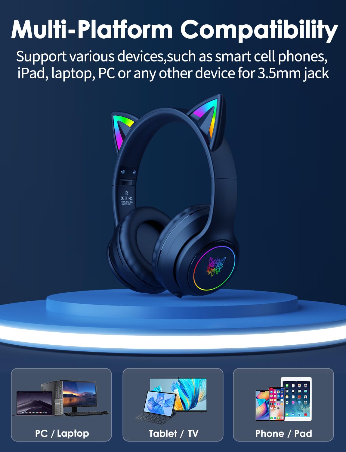 Photos: Cat Ear Bluetooth Headphones for Kids & Adults, 55H Play Time, Wireless Foldable & Wired Multi-Function LED Light Up Over Ear Headphones with Mic and Volume Control for… by ONITOON