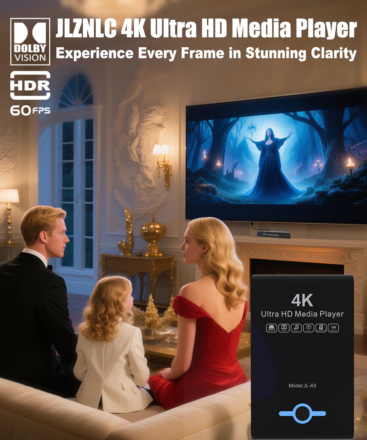- Simple, Compact but Powerful,JLZNLC 4K Media Player makes your TV smarter and enhances any TV (HD or old CRT) as a music, photo slideshows and USB Video player. It’s so simple and intuitive; Operation is without any complicated settings.