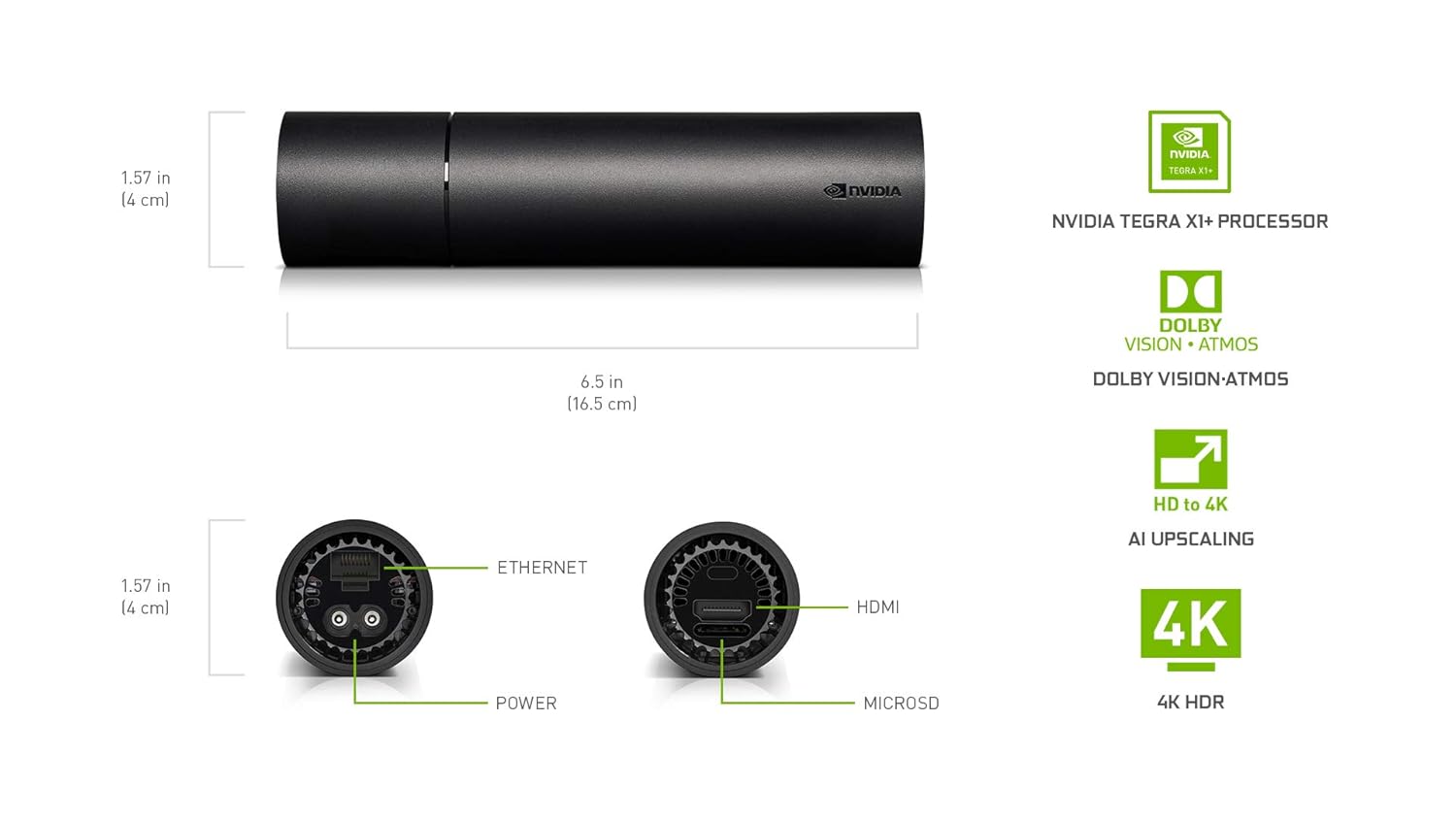 Specification: NVIDIA SHIELD Android TV Streaming Media Player; 4K HDR, live sports, Dolby Vision-Atmos, AI-enhanced upscaling, GeForce NOW cloud gaming, Google Assistant Built-In, Works with… by NVIDIA