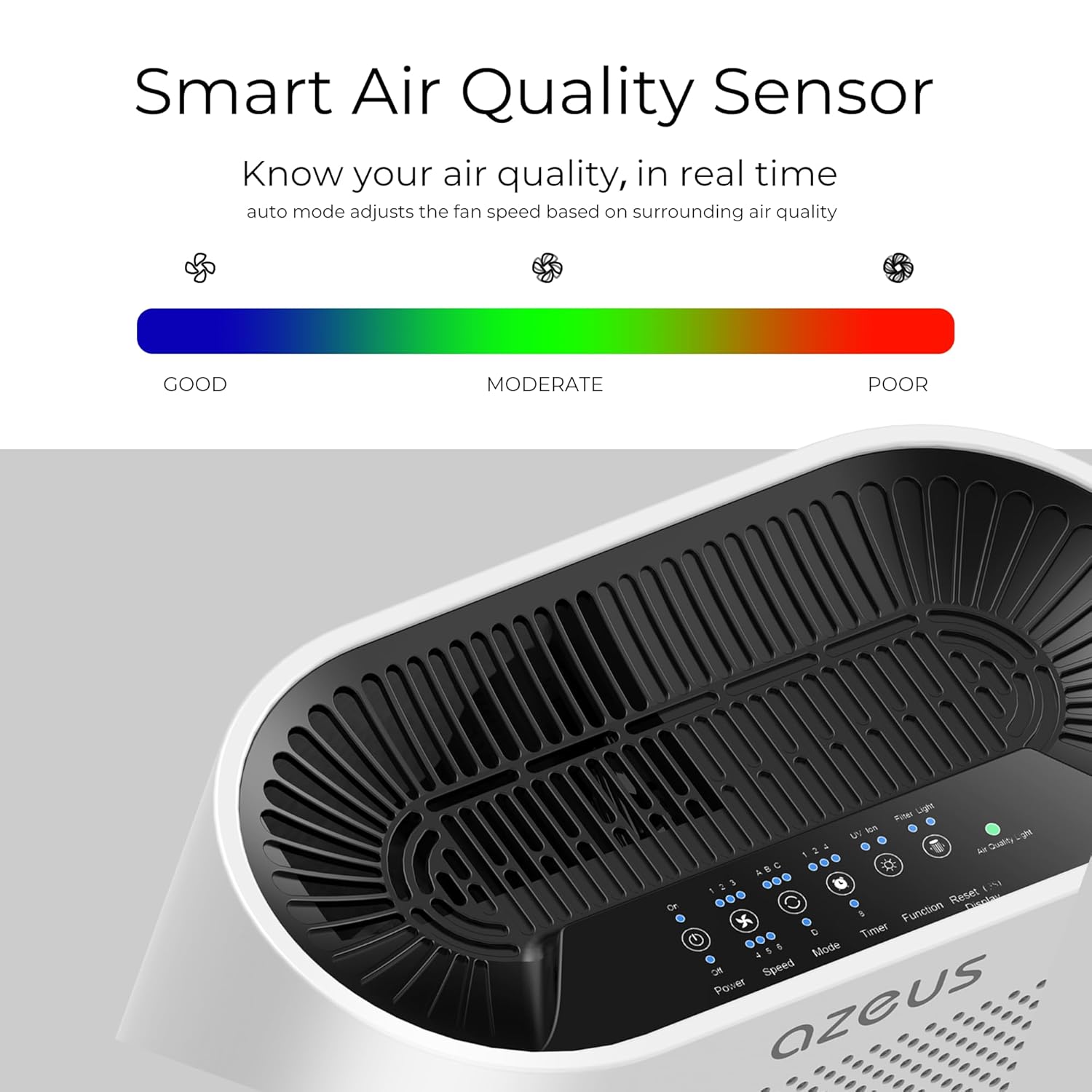 Azeus True HEPA Air Purifier GL-FS32 | 4-Stage Filtration System, Ultra-Quiet Operation, and Air Quality Sensor | Ideal for Large Rooms, Bedrooms, and Offices by AZEUS