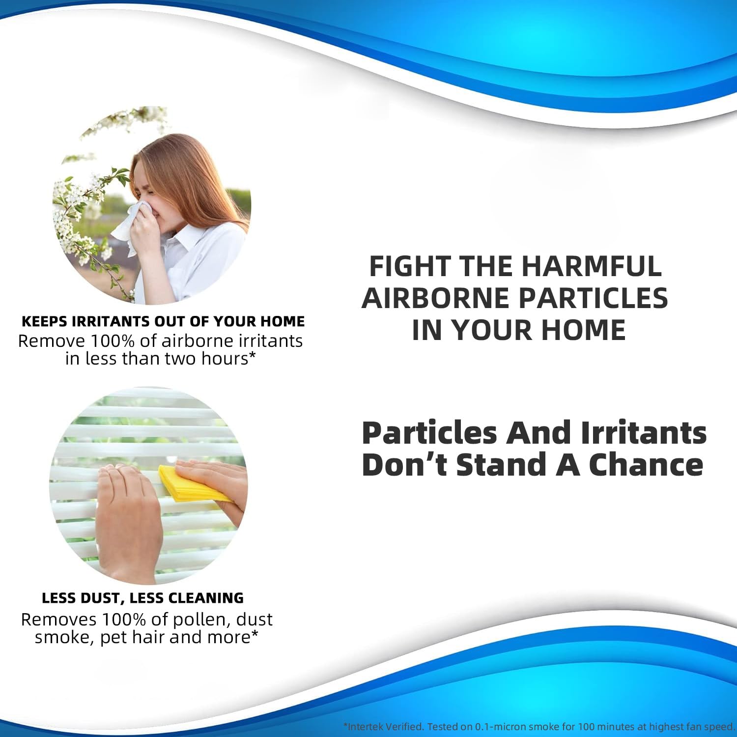 - INTERTEK LAB CERTIFIED โ E500 captures 100% of airborne particle pollutants as small as 0.1 microns including smoke, dust, and pollen. It removes pollen, dust, pet hair, harmful chemicals, and Ozone.