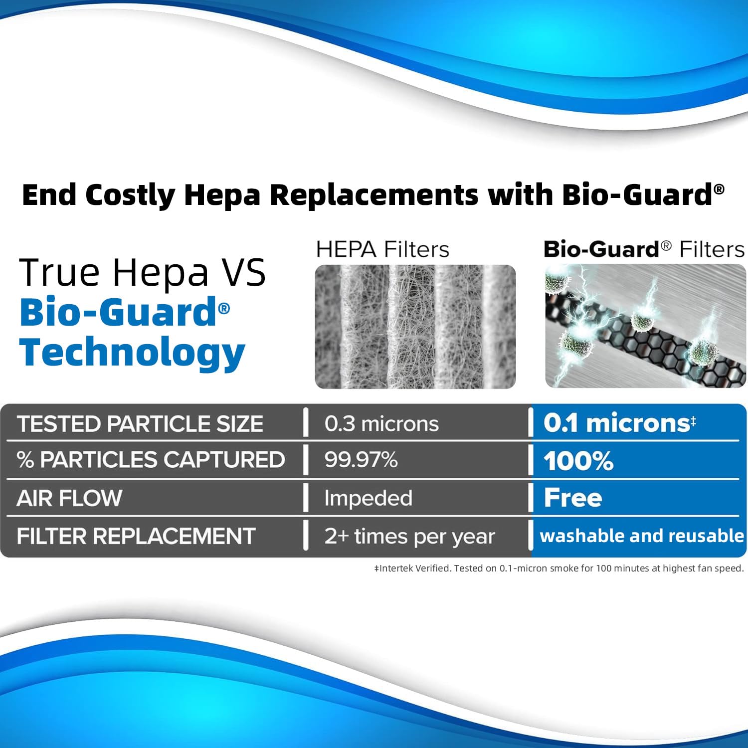 About Nuwave Air Purifiers for Home Large Room, Washable and Reusable Bio Guard Filter, Air Purifier for Smoke, Dust, Pollen, Removes up to 100% Particles 3x Smaller Than HEPA, Sleep…