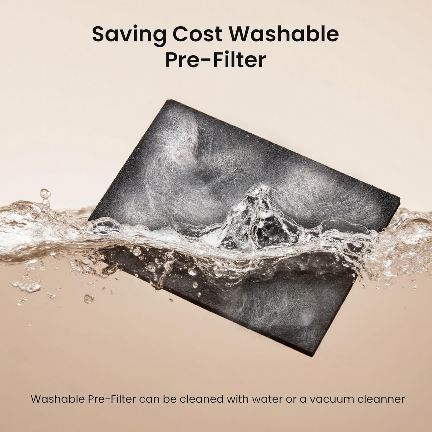 - Save 50% Costs on Filter: our replacement filters are divided into static pre-filter cotton and composite filter. Compare to Regular air purifier which has a max filter life of 3 months, our Replaceable Electrostatic Pre-filtered Cotton, which increases filter cartridge life from 3 months to 6 months, saving you 50% cost. (For filters, please search for B0DT6CWC1K Composite Filter or B0DT5RNTPV Pre-filter. Filter Dimensions: 1.0″Dx10.2″Wx11.3″H).
