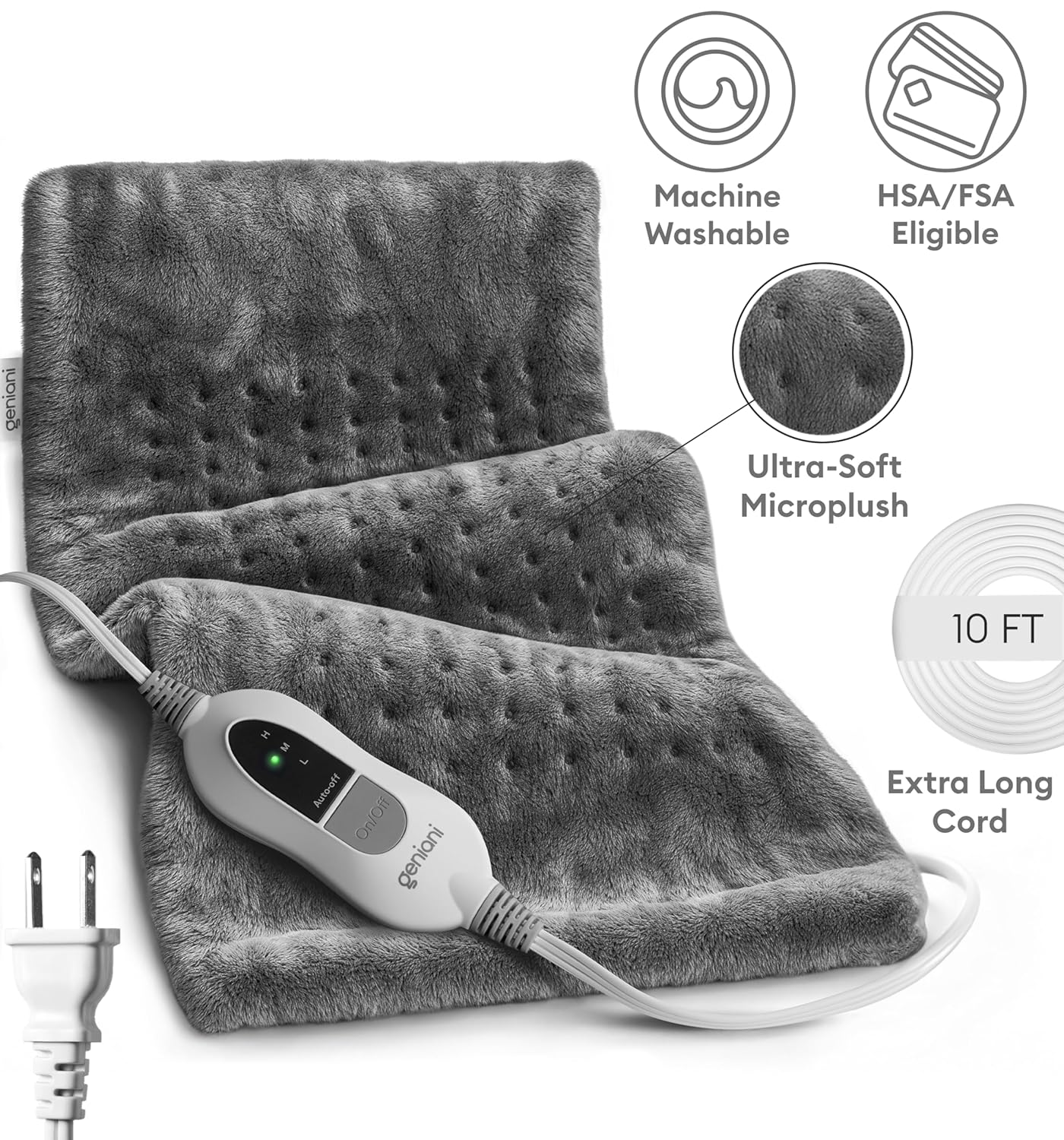 Customer Favorite — discover the GENIANI Electric Throw – XL Electric Heating Pad for Back Pain & Cramps Relief, Birthday for Women Men Auto Shut Off, Machine Washable, Heat Pad for Neck & Shoulder, 12×24″,… by GENIANI, built for performance and designed for life in the United States.