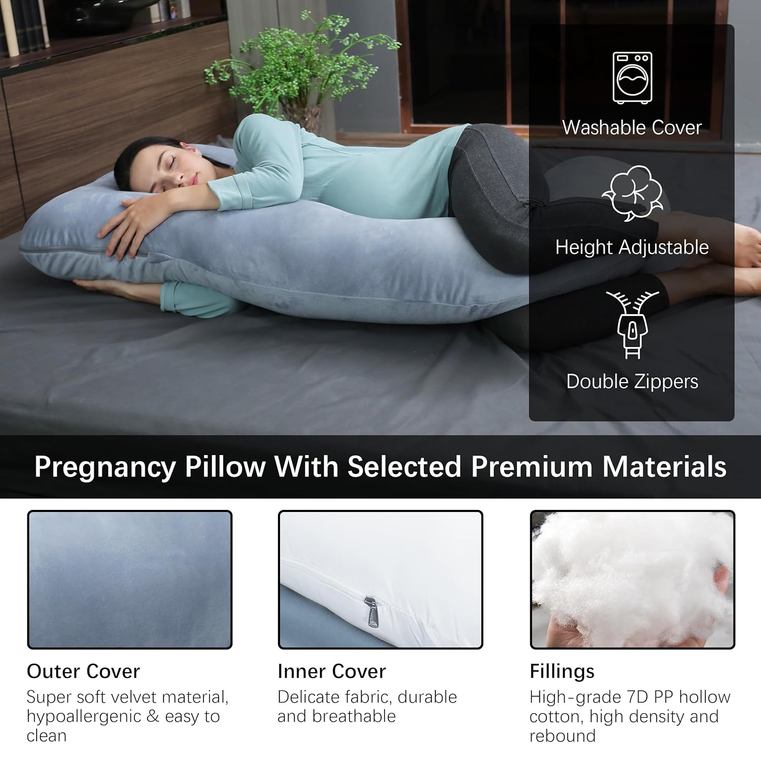 - ✅Experience the Cozy Comfort of Sleeping on a Cloud Every Night – Our premium polyester-filled pregnancy pillow provides the perfect balance of comfort and support for your entire body. Say goodbye to tossing and turning during the night and enjoy the feeling of sleeping on a cloud. It maintains its shape even after prolonged use.