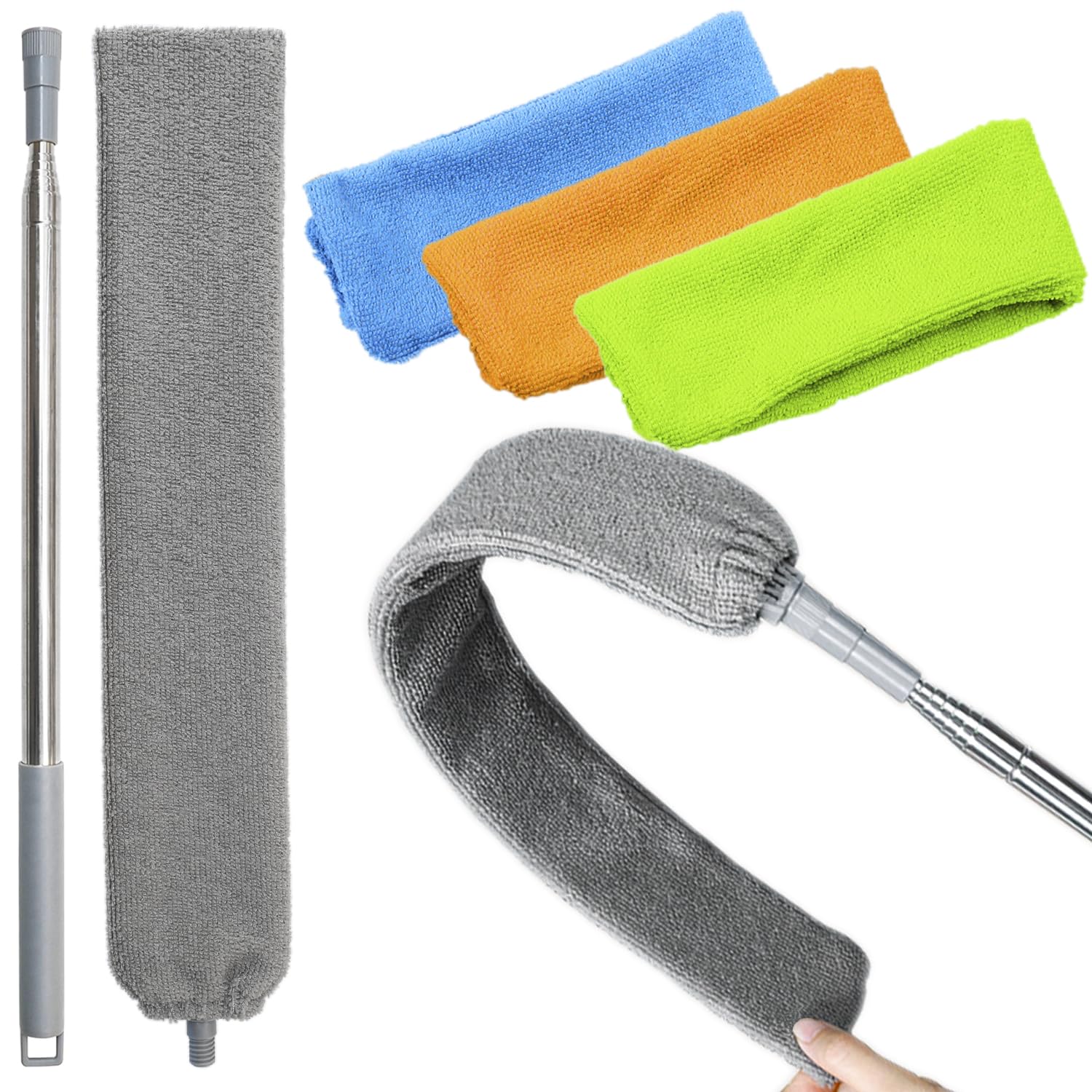 About 100 inches Retractable Gap Dust Cleaner Cleaning Tools with 4 Microfiber Dusting Cloths Long Handle, Washable and Retractable Duster Brush for Cleaning Under Appliances…