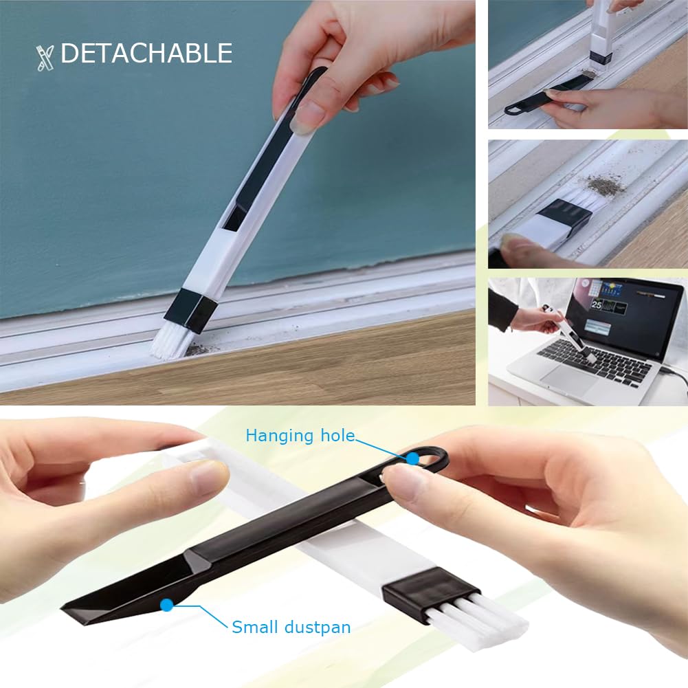 - 【2-in-1 Design】 Detachable brush cleaning tool ‘s narrow tufted brush end skinny cleaning brush enough to sweep away loose dirt, the other end scraper to dislodge stubborn dirt in corners, brush and dust pan cleaning set, it also can be detachable and collapsible.