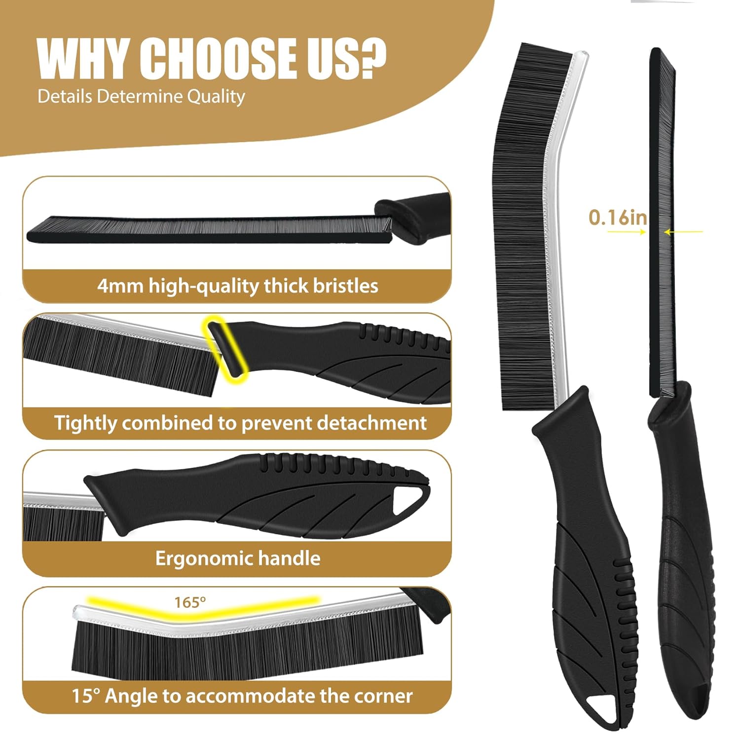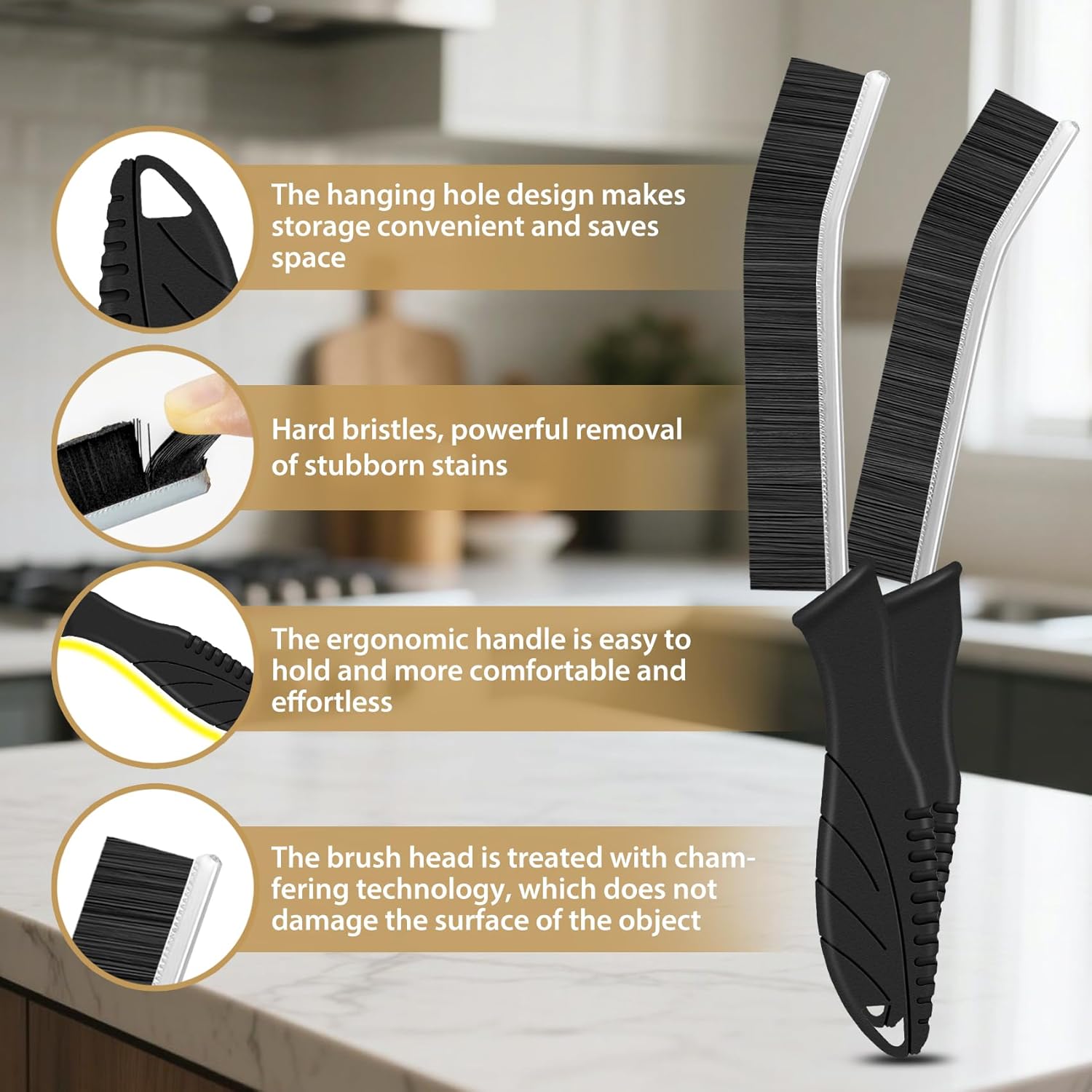 - 【Widely Applicable】The hard bristled crevice brush is suitable for cleaning small spaces such as faucets, sinks, stoves, toilet seat hinges, bathroom bathtubs, shower racks, sinks, window crevices, sliding door tracks, tile countertop grouting lines, fans, air conditioning vents, refrigerator gaskets, washing machines, furniture, wardrobes, bird feeders, cars, etc. Multiple sets can provide different brushes for different rooms such as kitchens, bathrooms, and living rooms to avoid mixing