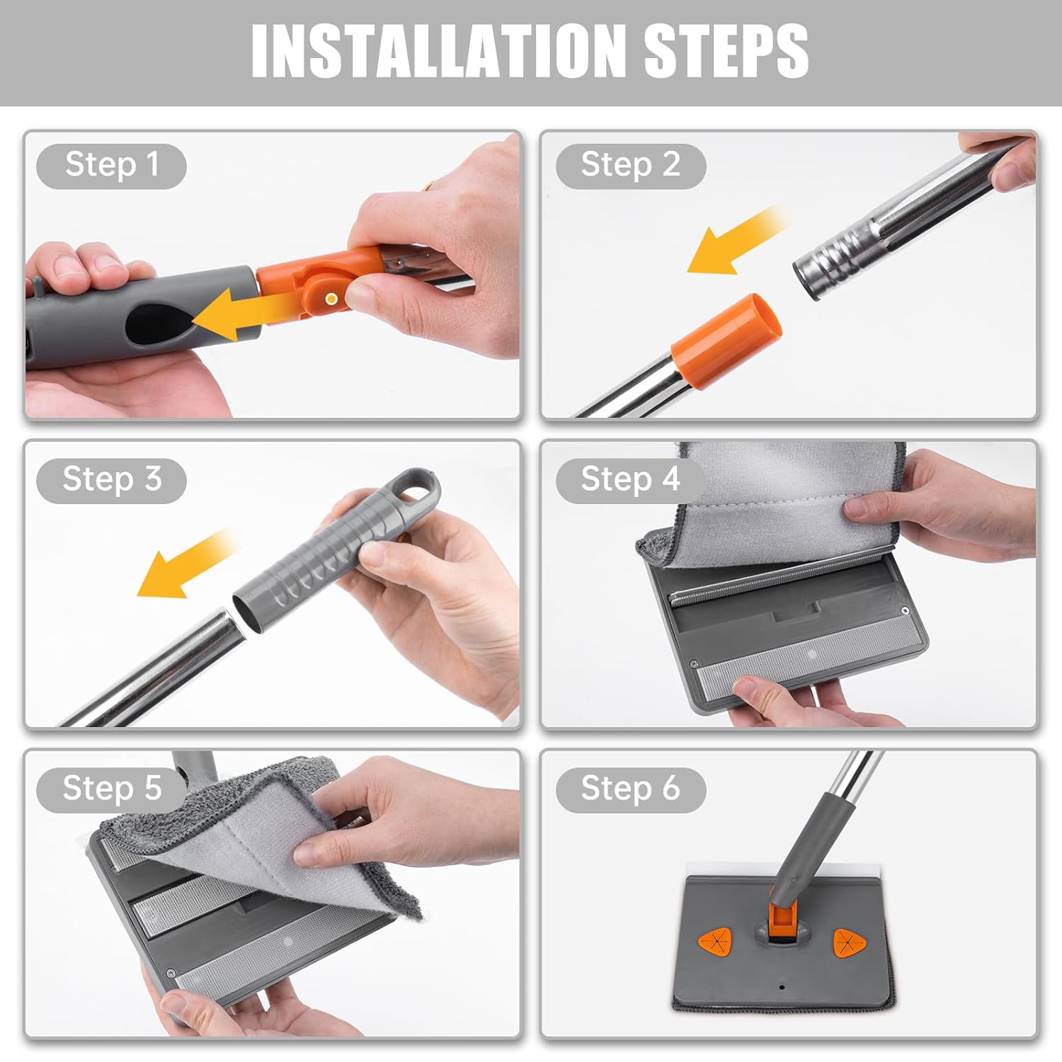 - [Washable and Reusable]: The cleaning set includes 8 reusable mop pads that fasten with velcro. They are machine-washable and hand-washable. Assembly is easy and takes only about a minute