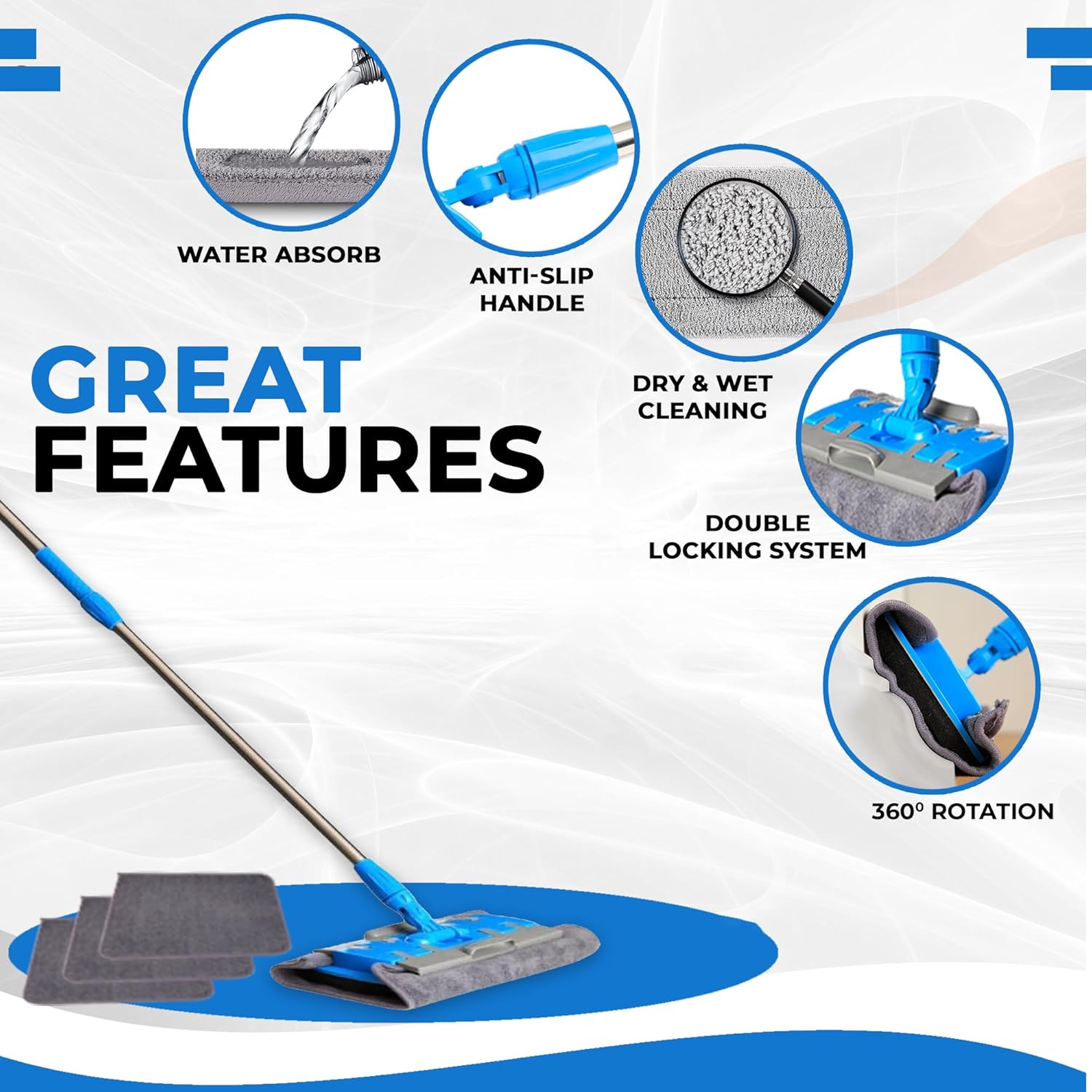 - Long Reach for High Places: This window cleaner tool conforms to any shape with its unique foam-enhanced 12″x6″ mop head. Our baseboard cleaning tool features a long, adjustable 52″ handle to reach high and hard-to-access areas, making cleaning easier and more efficient.
