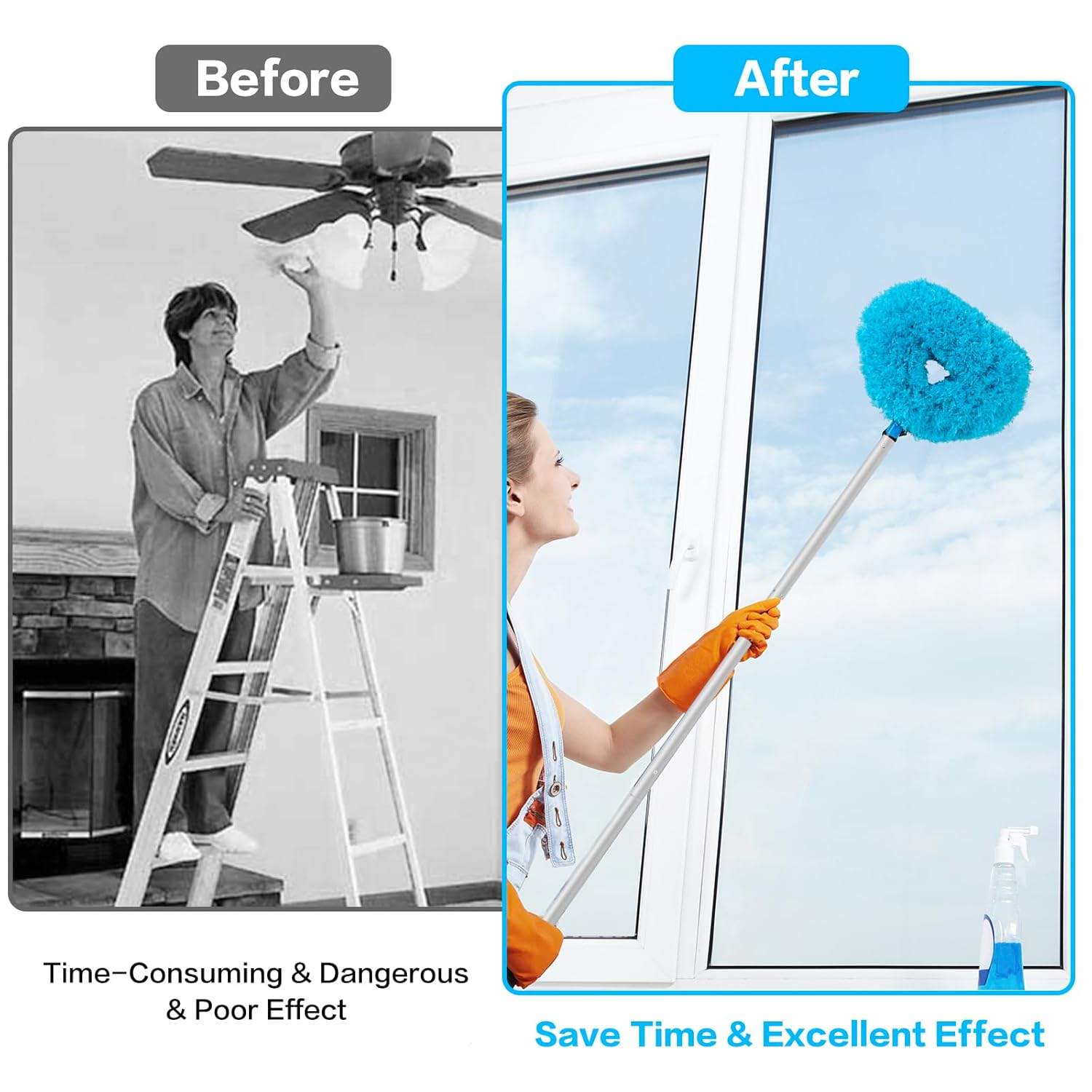 - Easy Storage: The blade maid ceiling fan cleaning tool is conveniently equipped with a hanging hole for easy storage and drying after use. Its detachable design allows for easy head removal when cleaning is finished, making it convenient to carry during travel or outings.