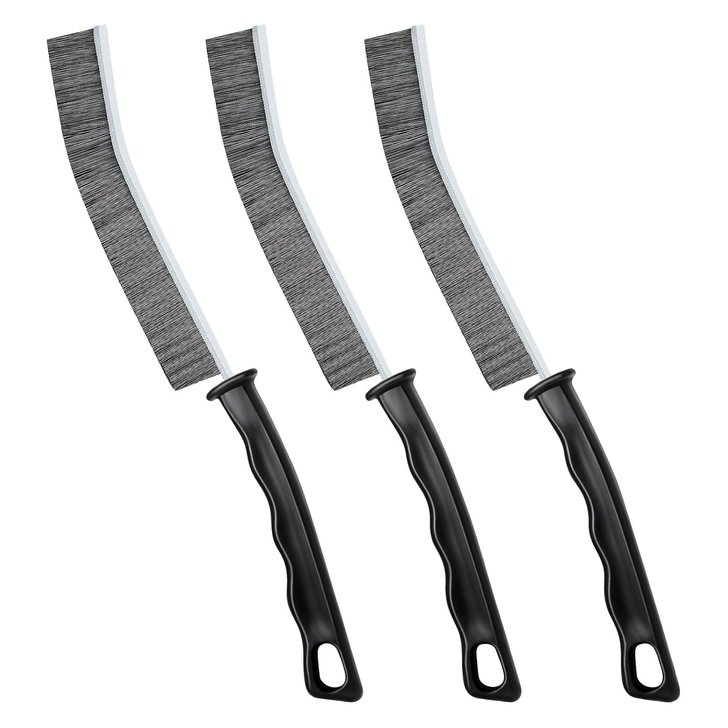 I can’t believe I waited so long to get some of these. I FINALLY got to clean behind and around my bathroom sink faucet. Do these work…YEEEESSSS! I not only cleaned my faucet but it looks like I replace it, looks brand new. After so long not being able to get in those tight spots around the faucet, I NEVER thought I would be able to clean it. I am VERY impressed with these brushes. I also was so excited to see how well it worked on my fans. I HATE cleaning my fans at the end of the season to put them away but I just can’t stand leaving them with dust and stuff stuck in the grates, so I do it every year and hate it every year. NOT ANYMORE….I unscrewed the grate on the fan and ran the brush over one side back and forth, then flip it over and all the dust and kitties were sticking out so I ran the brush back and forth on that side and it all came off. Thats it, after all the work I normally have to do to get that stuff off the grates, I couldn’t believe it. It also works great on window sills, all those hard to reach places, and best of all….your screens…pass it back and forth…….presto…clean! I will absolutely purchase more if need be. They seem very sturdy and nice hard bristles. I ordered the three pack. I did see that you can get more for the same price of three …BUT….if you notice the three pack, the ones I got have shaped handles for better grip and slightly angled bristles, that’s the ones you want. They are very easy to hold on to. I bet there are so many uses for these brushes, my minds racing. I was so excited to try these that the Amazon driver hadn’t even driven away from the front of my house when I had the package ripped open and headed for the bathroom. After I used it, I just ran it under warm water and let it air dry. BUY THESE…you won’t regret this purchase! Game Changer for sure.