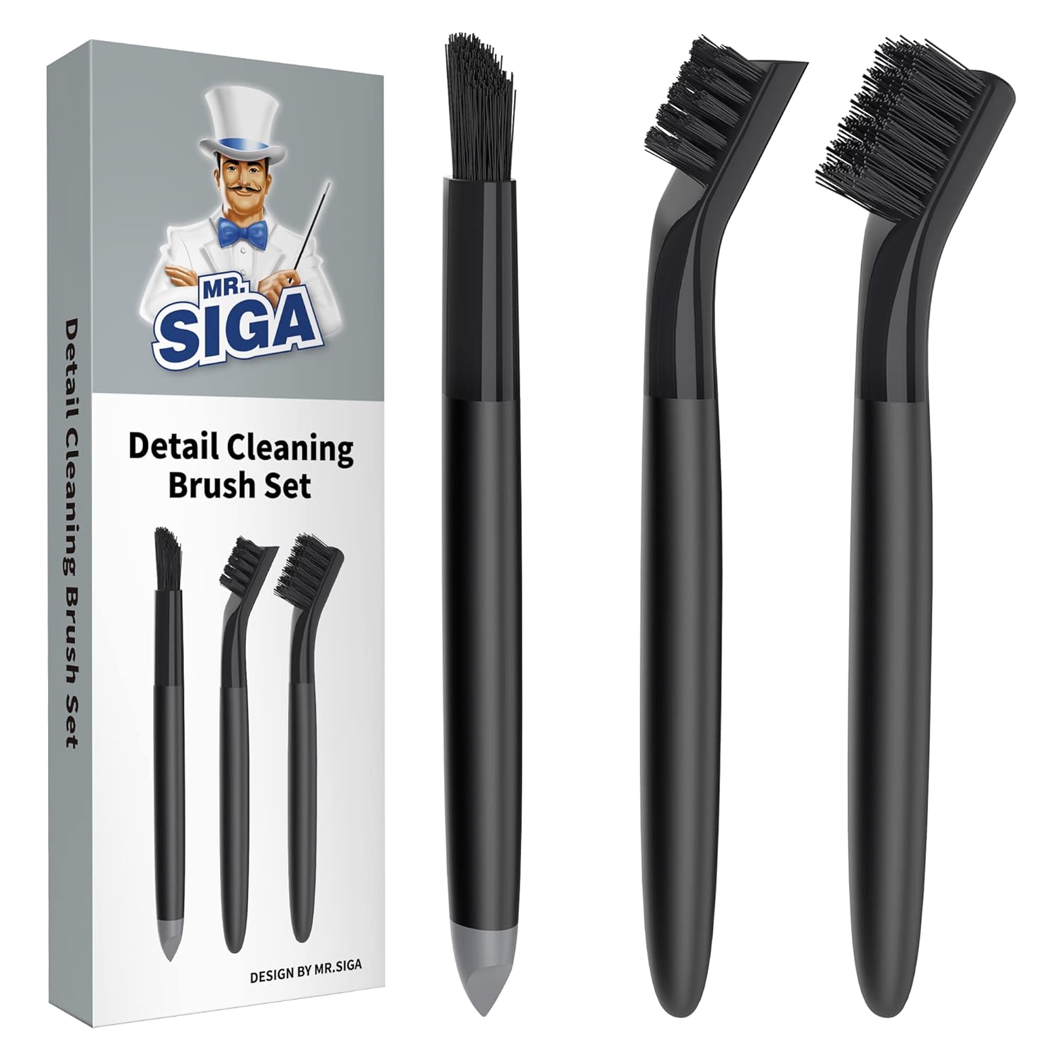 - MR.SIGA grout cleaner brush set contains: 1 “V” shape grout edge brush, 1 deep cleaning brush, 1 detail cleaning brush with silicone scraper, it’s a must-have grout scrub brush set for your household cleaning.