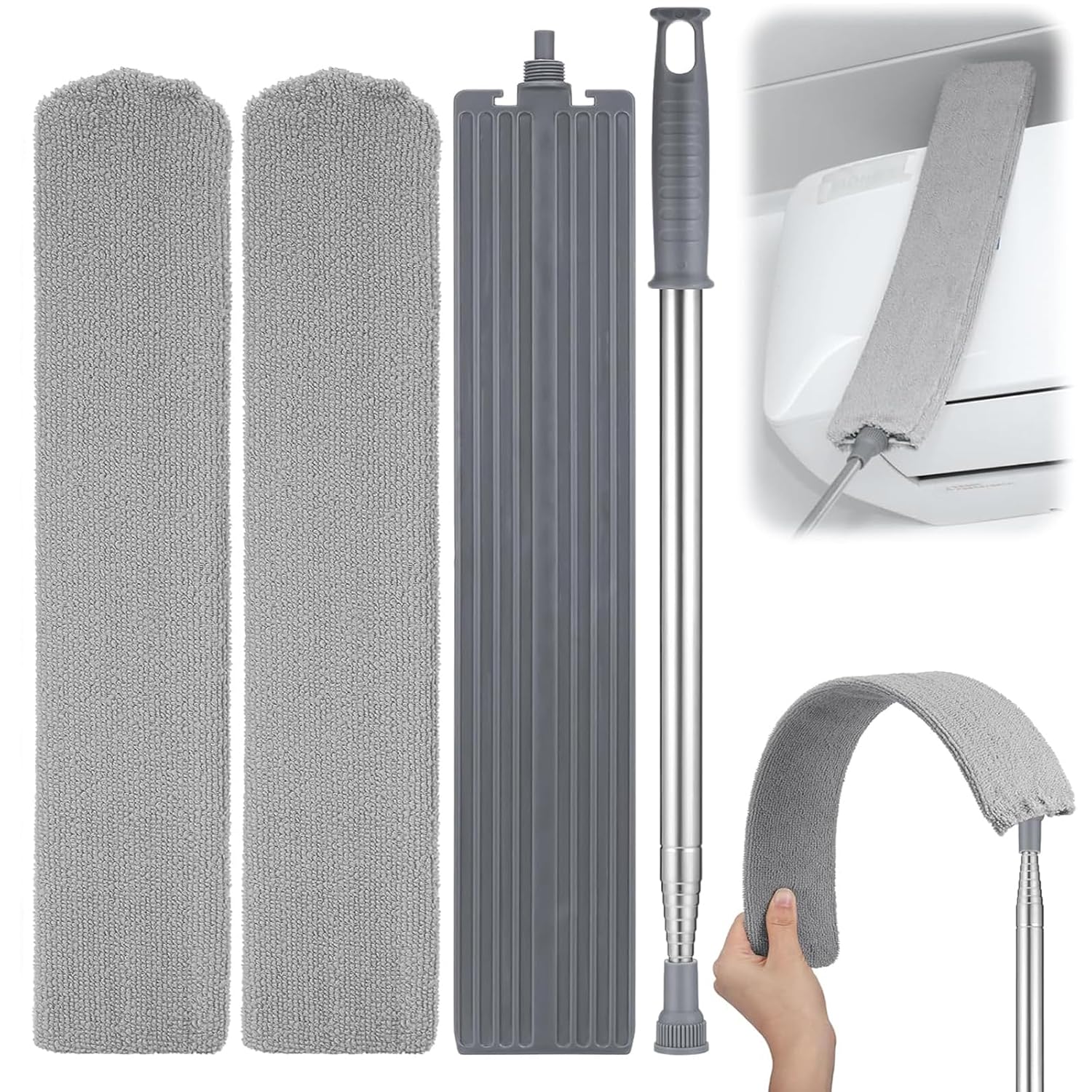 About Retractable Gap Dust Cleaner Brush with Long Handle (30 to 100 inches), Cleaning Tools with 2 Microfiber Dusting Cloths, Extendable Duster for Cleaning Under Refrigerator Sofa…