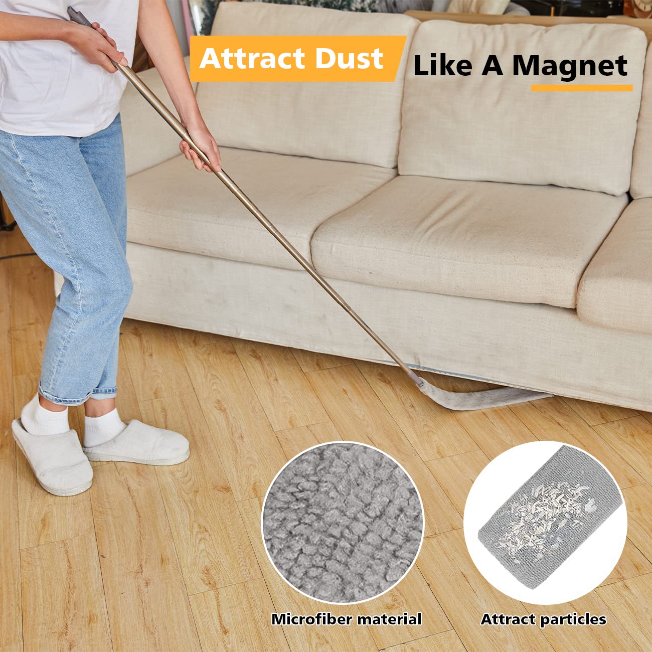 - 【Attract Dust Like A Magnet】Unlike regular dusters just sending dust airborne to settle back down later, our microfiber gap duster can attract and hold on to dust and hairs. The positively charged fibers in the microfiber duster can attract and hold onto negatively charged dust particles. You don’t’ need to bear or be irritated by raise dust during cleaning anymore.
