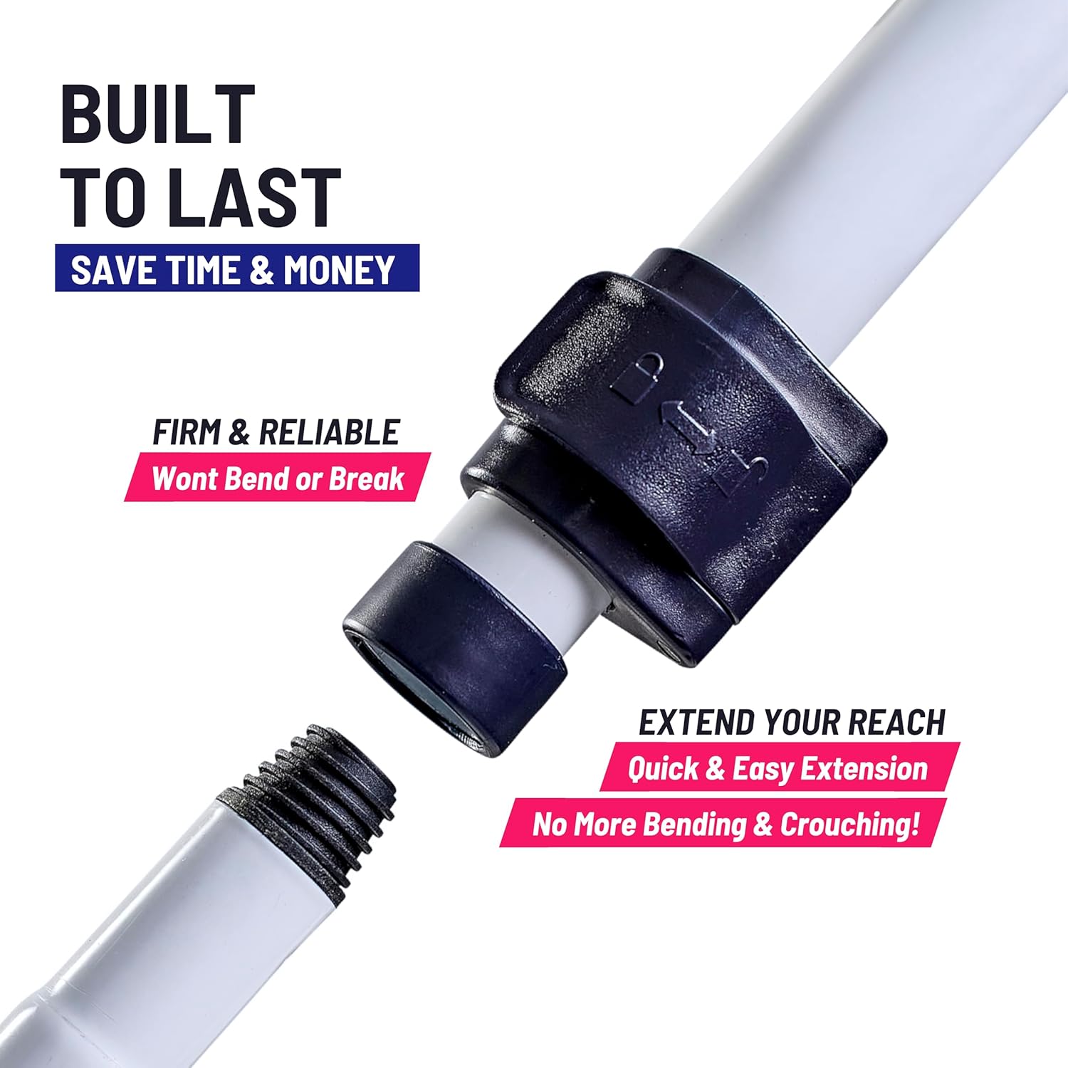 I’ve owned several of these type extended brushes over the years, but this one is by far the best. First, the handle is made of sturdy metal, not plastic, easy to adjust the length and you can extend it all the way to regular mop height. Also, the 3 types of attachments are perfect, easy to attach. This thing is great if you have mobility issues, especially for cleaning behind and around the toilet. So much more well-made than others, and more versatile, too.